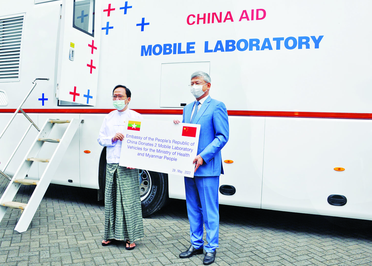 ဆက်လက်၍ ပြည်ထောင်စုဝန်ကြီးက တရုတ်နိုင်ငံမှ မြန်မာနိုင်ငံသို့ ကိုဗစ်-၁၉ ကာကွယ်ဆေး စုစုပေါင်း Doses သန်း ၂၀ ခန့် လှူဒါန်းပြီးဖြစ်ပါကြောင်း၊ ထို့အပြင် ကာကွယ်ဆေးထိုးအပ်များအပါအဝင် ဆေးနှင့် ဆေးပစ္စည်းများ၊ တရုတ်-မြန်မာ နယ်စပ်ဒေသကုန်သွယ်ရေးဂိတ်များတွင် အသုံးပြုရန် ရွေ့လျားအမိုးအကာပါဓာတ်ခွဲခန်း၊ လူနာတင်ယာဉ်၊ mobile laboratory vehicles နှစ်စီး အားလှူဒါန်းခဲ့ပါကြောင်း၊ ယခုလှူဒါန်းသည့် ကာကွယ်ဆေးများအား မကြာမီ ပြန်လည်ဖွင့်လှစ်မည့် အခြေခံပညာကျောင်းများမှ အသက် ၅ နှစ်မှ ၁၂ နှစ်အထိ ကျောင်းသား ကျောင်းသူများကို ထိုးနှံပေးသွားမည်ဖြစ်ပြီး ကျောင်းပြင်ပရောက်ရှိနေသည့် ကလေးများကိုလည်း ဆက်လက်ထိုးနှံပေးသွားမည်ဖြစ်ပါကြောင်း၊ နယ်စပ်ဒေသများတွင် ကူးစက်ရောဂါထိန်းချုပ်မှုများ ဆောင်ရွက်ရေးအတွက် ဓာတ်ခွဲခန်းများ ဖွင့်လှစ်လျက်ရှိရာ ယခုလှူဒါန်းသည့် Mobile Laboratory Vehicles နှစ်စီးကို Covid-19 RT- PCR စက်မရှိသည့် နယ်စပ်ဂိတ်များတွင် အဓိကထားအသုံးပြုသွားမည်ဖြစ်သဖြင့် နယ်စပ်ဝင်ပေါက်များတွင် ကိုဗစ်-၁၉ ရောဂါ ကာကွယ်ထိန်းချုပ်ရေးကို ထိရောက်စွာ ပြုလုပ်နိုင်မည်ဖြစ်ပြီး ကုန်စည်စီးဆင်းမှုများမြန်ဆန် ချောမွေ့ကာ နယ်စပ်ကုန်သွယ်ရေးကဏ္ဍ ပြန်လည်ဖွံ့ဖြိုးတိုးတက်ရေးအတွက် များစွာအသုံးဝင်မည်ဖြစ်ပါကြောင်း။