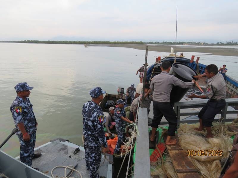 ရခိုင်ပြည်နယ်၊ မောင်တောမြို့နယ်၊ နတ်မြစ်ကမ်းနံဘေးရှိ မကျီးချောင်းဝ၌ လုံခြုံရေးဆောင်ရွက်နေသော တပ်ဖွဲ့ဝင်များသည် ယနေ့နံနက် ၁၀ နာရီ ၄၀ မိနစ်ခန့်တွင် မန်ကျီးချောင်းဝ၏ အနောက်ဘက်နတ်မြစ်အတွင်း စက်လှေ ၁ စီးမျောပါနေကြောင်း တွေ့ရှိရသဖြင့် သွားရောက်စစ်ဆေးရာ အလျား ၆၅ ပေ၊ အနံ ၁၇ ပေရှိ လှိုင်ထက်စံအမည်ရှိ ကုန်တင်စက်လှေဖြစ်ကြောင်းသိရှိရပြီး လှေ၏ ဦးပိုင်းမှရေဝင်၍ နစ်မြုပ်လျက်ရှိသဖြင့် စက်လှေပေါ်ရှိ လှေပိုင်ရှင်အပါအဝင် အမျိုးသား ၆ ဦးကို ကူညီ ကယ်ဆယ်ခဲ့သည်။