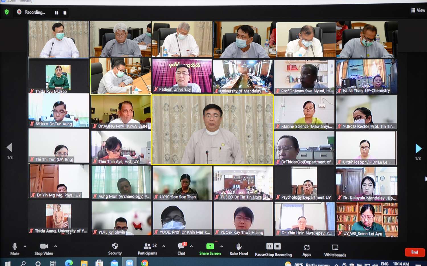 တိုင်းဒေသကြီးနှင့် ပြည်နယ်တစ်ခုလျှင် ပါရဂူဘွဲ့ သင်တန်းဖွင့်လှစ်သည့် တက္ကသိုလ်အနည်းဆုံး တစ်ခုရှိရေး ဦးတည်ဆောင်ရွက်လျက်ရှိရာ အမှန်တကယ် ဖွင့်လှစ်နိုင်ရေးအတွက် လိုအပ်ချက်များ ပြည့်စုံမှု ရှိ၊ မရှိ စိစစ်သုံးသပ်ဆုံးဖြတ်ကြရမည်ဖြစ်ကြောင်း ပြောကြားသည်။