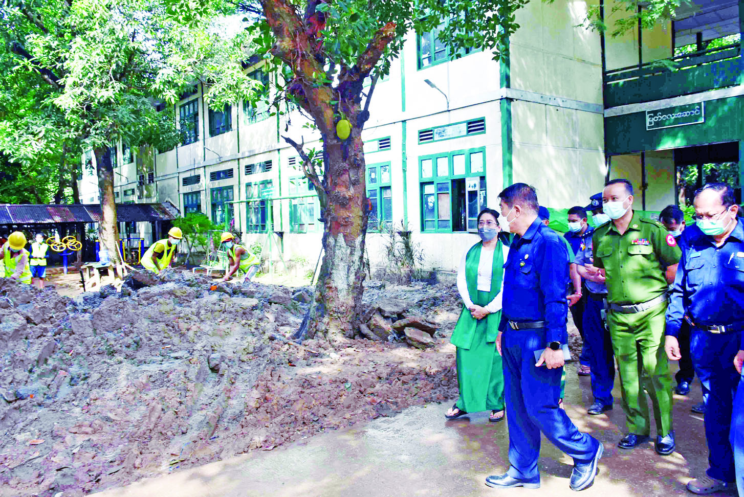 ရန်ကုန်တိုင်းဒေသကြီး စည်ပင်သာယာရေးဝန်ကြီး၊ ရန်ကုန်မြို့တော်စည်ပင်သာယာရေးကော်မတီဥက္ကဋ္ဌ (မြို့တော်ဝန်) ဦးဗိုလ်ဌေးသည် ဒုတိယဥက္ကဋ္ဌ (ဒုတိယ မြို့တော်ဝန်)ဦးညီညီ၊ အတွင်းရေးမှူး ဦးညွန့်ဖေနှင့် ကော်မတီဝင်များနှင့်အတူ ယနေ့ နံနက် ၇ နာရီတွင် အင်းစိန်မြို့နယ် စဉ့်ငူရပ်ကွက် အောက်မင်္ဂလာဒုံလမ်းရှိ ဆေးဘက်ဆိုင်ရာ နည်းပညာတက္ကသိုလ် (ရန်ကုန်)ကျောင်းသို့ သွားရောက်၍ မြို့နယ်စီမံအုပ်ချုပ်ရေးအဖွဲ့နှင့် စည်ပင်သာယာအုပ်ချုပ်ရေးမှူးရုံးတို့၏ ကြီးကြပ်မှုဖြင့် ဌာနဆိုင်ရာဝန်ထမ်းများ၊ လူမှုအသင်းအဖွဲ့များနှင့် ရပ်ကွက်နေပြည်သူများ ပူးပေါင်းအင်အားဖြင့် ကျောင်းဝင်းအတွင်း သန့်ရှင်းသာယာသပ်ရပ်ရေးအတွက် မြက်ပင်ချုံနွယ်များ ရှင်းလင်းခြင်း၊ အုပ်မိုးကိုင်းများခုတ်ထွင်ရှင်းလင်း၍ အလင်းဖွင့်ပေးခြင်း၊ အောက်တက်ပင်များသစ်ကိုင်း သစ်ခက်များရှင်းလင်း၍ ပုံသွင်းခြင်း၊ ရေစီးရေလာကောင်းမွန်ရေးအတွက် ကျောင်းအတွင်းရှိ ရေနုတ်မြောင်းများ တူးဖော်ရှင်းလင်းခြင်း သွေးလွန်တုပ်ကွေးရောဂါ ကာကွယ်နှိမ်နင်းရေးအတွက် စာသင်ခန်းများအတွင်း ခြင်ဆေးမှုတ်ခြင်းလုပ်ငန်းများ ဆောင်ရွက်နေမှုကို ကြည့်ရှုစစ်ဆေးပြီး လိုအပ်သည်များ ဖြည်ဆည်းဆောင်ရွက်ပေးသည်။