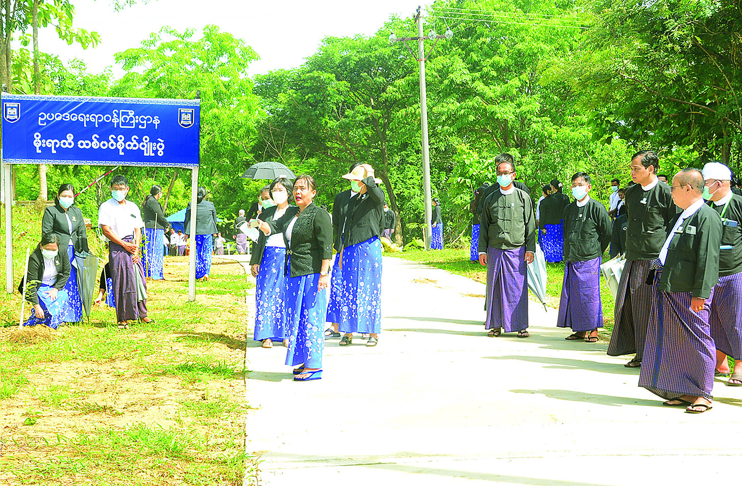 ဦးစွာ ပြည်ထောင်စုဝန်ကြီးနှင့် ပြည်ထောင်စုရှေ့နေချုပ် ဒေါက်တာသီတာဦးက ရုံးအဝင်လမ်းဘေးရှိတစ်ဖက်ပိတ်ဆည်အတွင်းသို့ ငါးကြင်းသားပေါက်များကို စိုက်ထည့်ပေးသည်။ ဆက်လက်၍ ဒုတိယဝန်ကြီးနှင့် ဒုတိယရှေ့နေချုပ်ဦးစန်းလွင်နှင့် ညွှန်ကြားရေးမှူးချုပ်များ၊ ဒုတိယအမြဲတမ်းအတွင်းဝန်နှင့် ဒုတိယညွှန်ကြားရေးမှူးချုပ်များ၊ ညွှန်ကြားရေးမှူးများကဆည်အတွင်းသို့ ငါးကြင်းသားပေါက်ကောင်ရေ ၃၀၀၀ ကို စိုက်ထည့်ပေးကြသည်။ ယင်းနောက် ရုံးအနောက်ဘက်ကွန်ကရစ်လမ်းဝဲ/ယာရှိ သတ်မှတ်နေရာအသီးသီးတွင် ပြည်ထောင်စုဝန်ကြီးနှင့် ပြည်ထောင်စုရှေ့နေချုပ်၊ ဒုတိယဝန်ကြီးနှင့်ဒုတိယရှေ့နေချုပ်၊ ညွှန်ကြားရေးမှူးချုပ်များ၊ ဒုတိယညွှန်ကြားရေးမှူးချုပ်များ၊ ညွှန်ကြားရေးမှူးများနှင့် အရာထမ်း/ အမှုထမ်းများက ကျွန်း၊ ငု၊ ငုချယ်ရီ၊ ကံ့ကော်၊ ခရေ၊ သပြေ၊ စိန်ပန်းပင် ကြီး၊ ပျဉ်းမ၊ သီဟိုဠ် စုစုပေါင်း ၁၃၅ ပင်ကို စိုက်ပျိုးပေးခဲ့ကြသည်။