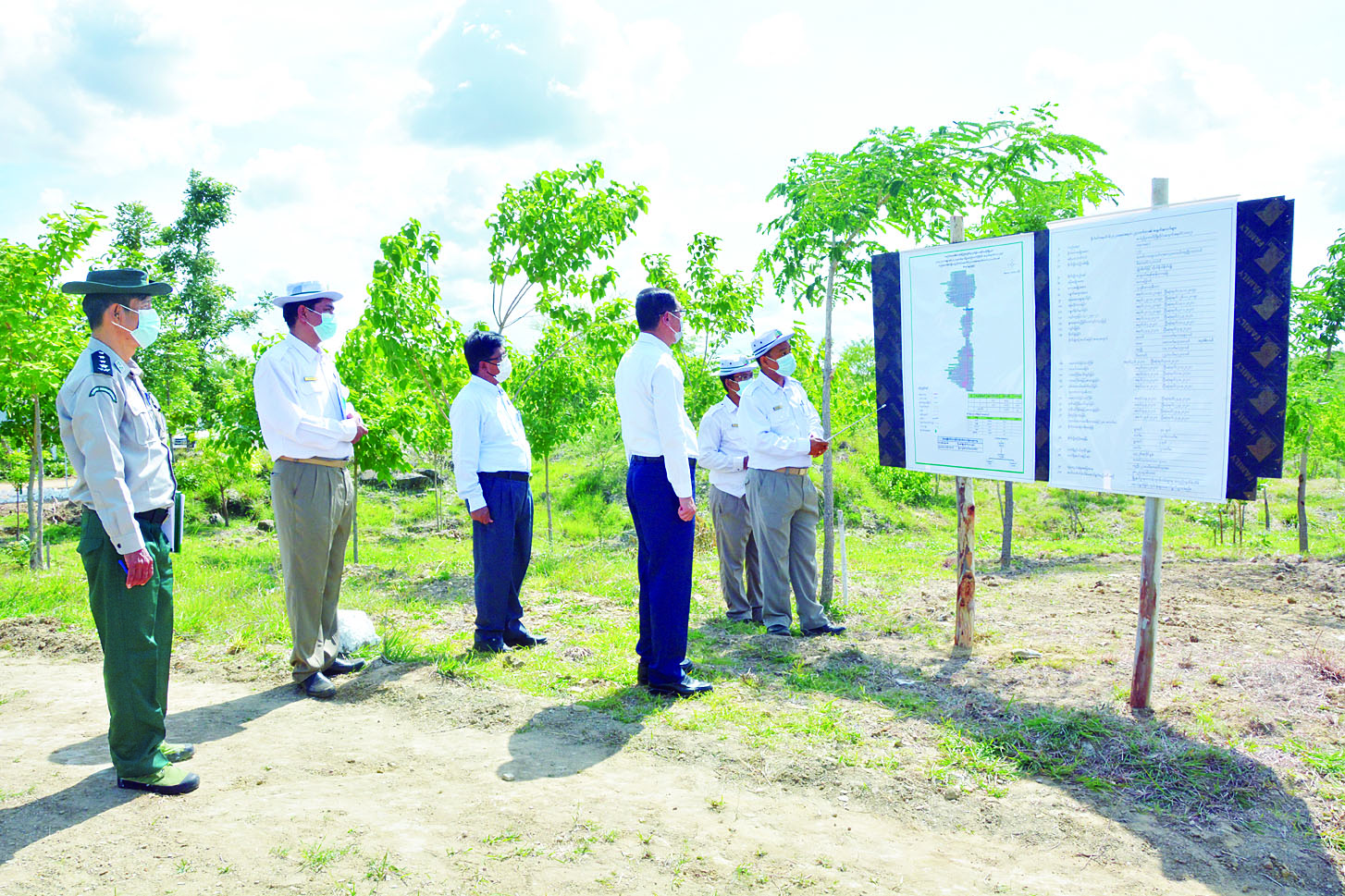 သယံဇာတနှင့်သဘာဝပတ်ဝန်းကျင်ထိန်းသိမ်းရေးဝန်ကြီးဌာန ပြည်ထောင်စုဝန်ကြီးဦးခင်မောင်ရီသည် ယနေ့မွန်းလွဲပိုင်းတွင်မြန်မာနိုင်ငံအပူပိုင်း သစ်တောကြိုးဝိုင်းများ၏ဂေဟစနစ်ဝန်ဆောင်မှုများနှင့် ဒေသတွင်းကုန်ထုတ်လုပ်မှုများ မြှင့်တင်ရေးစီမံကိန်းဖြင့် အပူပိုင်းဒေသစိမ်းလန်းစိုပြည်ရေးဦးစီးဌာနက အကောင်အထည်ဖော်ဆောင်ရွက်ထားသည့် မန္တလေးတိုင်းဒေသကြီး မလှိုင်မြို့နယ် မယ်ညိုတောင် ကြိုးဝိုင်းအကွက်အမှတ် (၁၁)ရှိ (၆/၂၀၂၀) တံခွန်တိုင်ဆည်ရေဝေရေလဲစိုက်ခင်းဧက ၆၀ နှင့် ဝမ်းတွင်းမြို့နယ် မယ်ညိုတောင်ကြိုးဝိုင်း အကွက်အမှတ် (၁၀)ရှိ (၈/၂၀၂၀) ရေဝေရေလဲစိုက်ခင်းဧက ၂၀၀ သို့ရောက်ရှိရာ တာဝန်ရှိသူများက စိုက်ခင်း လုပ်ငန်းများဆောင်ရွက်ထားရှိမှုနှင့် စီမံကိန်းဆိုင်ရာ အချက်အလက်များကို ရှင်းလင်းတင်ပြသည်။ ထို့နောက် ပြည်ထောင်စုဝန်ကြီးက စိုက်ခင်းများရှင်သန်အောင်မြင်နေမှုကိုကြည့်ရှုစစ်ဆေးပြီး တာဝန်ရှိသူများကို လိုအပ်သည်များမှာကြားသည်။