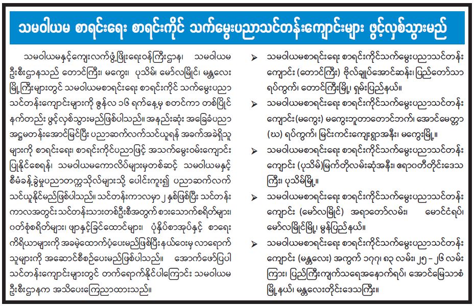 သမဝါယမ စာရင်းရေး စာရင်းကိုင် သက်မွေးပညာသင်တန်းကျောင်းများ ဖွင့်လှစ်သွားမည်