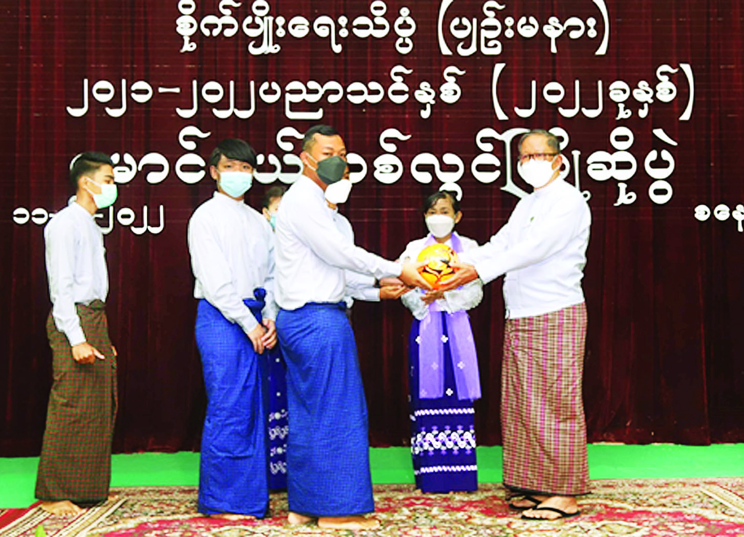 ဆက်လက်၍ ပြည်ထောင်စုဝန်ကြီးက အားကစားပစ္စည်းများကိုလည်းကောင်း၊ နေပြည်တော် ကောင်စီဥက္ကဋ္ဌက ထောက်ပံ့ငွေများနှင့် ကျန်းမာရေးဆိုင်ရာ အထောက်အကူပြုပစ္စည်းများ ကိုလည်းကောင်း ပေးအပ်ကြရာ ကျောင်းသား ကျောင်းသူကိုယ်စားလှယ်များက လက်ခံရယူ ခဲ့ကြပြီး ကျောင်းသားတစ်ဦးနှင့် ကျောင်းသူတစ်ဦးတို့က ကျေးဇူးတင်စကား ပြောကြားသည်။