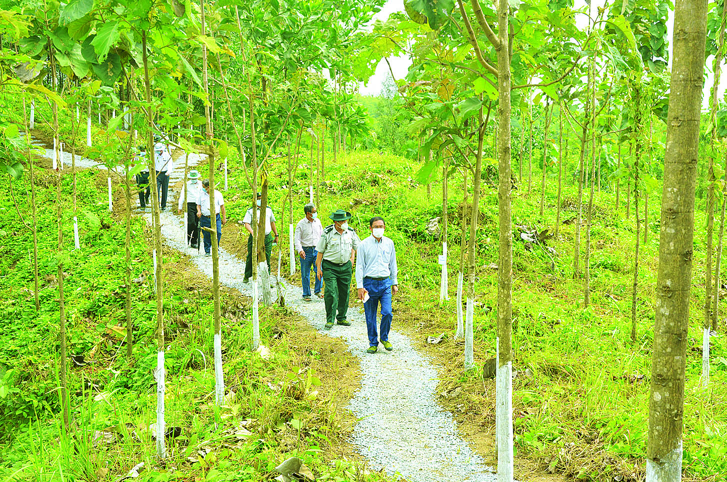 ထို့နောက် ကျွန်း၊ ပျဉ်းကတိုး၊ မဟော်ဂနီ၊ သင်္ကန်းအပါအဝင် အကြီးမြန်သစ်မျိုး ၅၀ ဖြင့် စိုက်ပျိုးထားသော သစ်မျိုးစုံစိုက်ခင်း၏ အောင်မြင် ဖြစ်ထွန်းနေမှုကို လှည့်လည်ကြည့်ရှု စစ်ဆေးသည်။