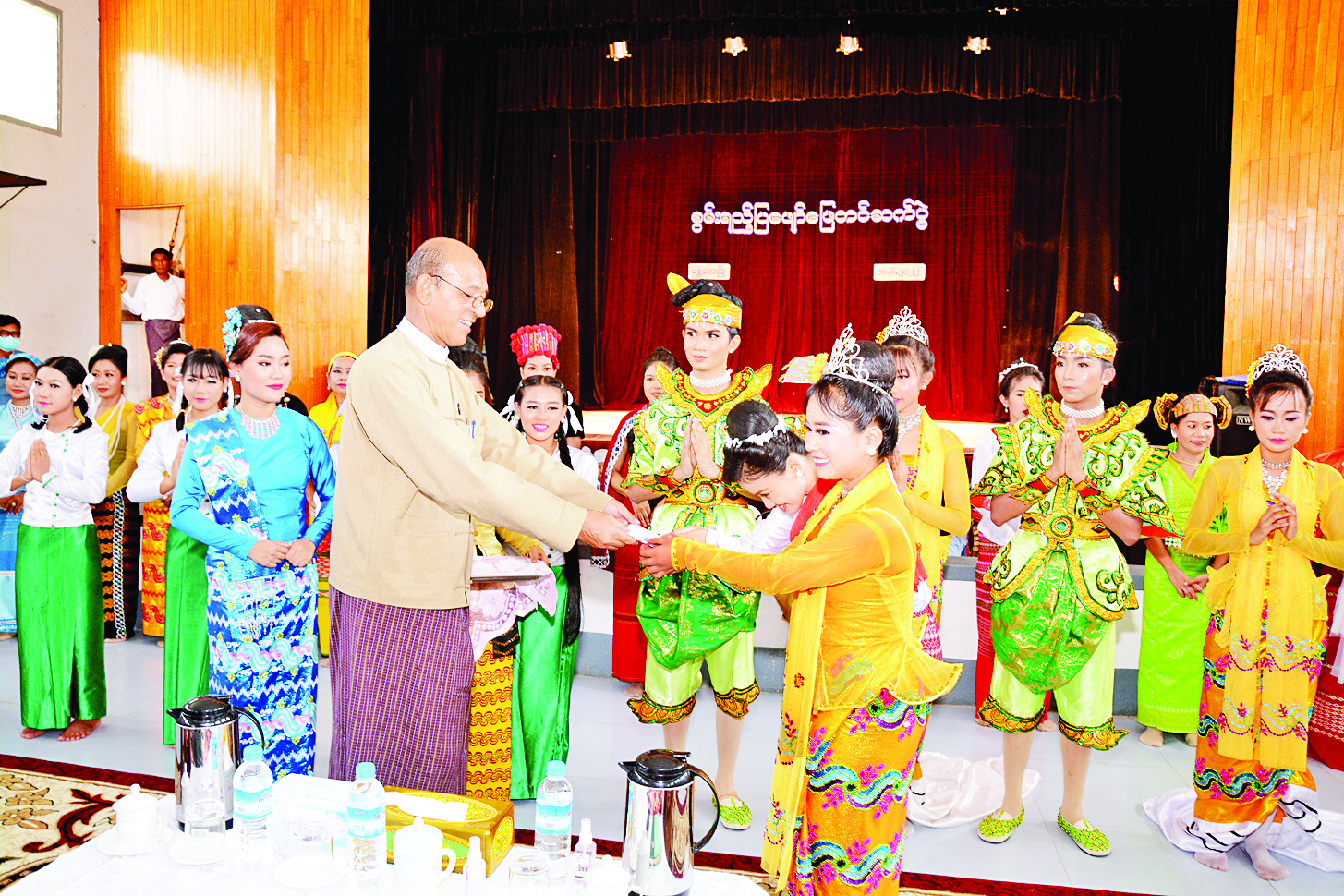 သာသနာရေးနှင့် ယဉ်ကျေးမှုဝန်ကြီးဌာန ဒုတိယဝန်ကြီး ဒေါက်တာ မိုးဇော်ထွန်းသည် အနုပညာဦးစီးဌာန တာဝန်ရှိသူများနှင့်အတူ ယနေ့နံနက်ပိုင်းတွင် မန္တလေးမြို့ အောင်မြေသာစံ မြို့နယ် နန်းတော်ရှေ့ အနုပညာဦးစီးဌာန (မန္တလေး)၊ ထုတ်လုပ်ဌာနစု၊ လေ့ကျင့်ရေးဇာတ်ရုံ၌ အနုပညာ ဦးစီးဌာန(မန္တလေး)၊ ထုတ်လုပ်ဌာနစုနှင့် အနုပညာအထက်တန်းကျောင်း ကျောင်းသား ကျောင်းသူများ၏ စွမ်းရည်ပြ ဖျော်ဖြေတင်ဆက်ပွဲ အခမ်းအနားကို ကြည့်ရှု အားပေးပြီး ဆုငွေများ ချီးမြှင့်ပေးအပ်သည်။