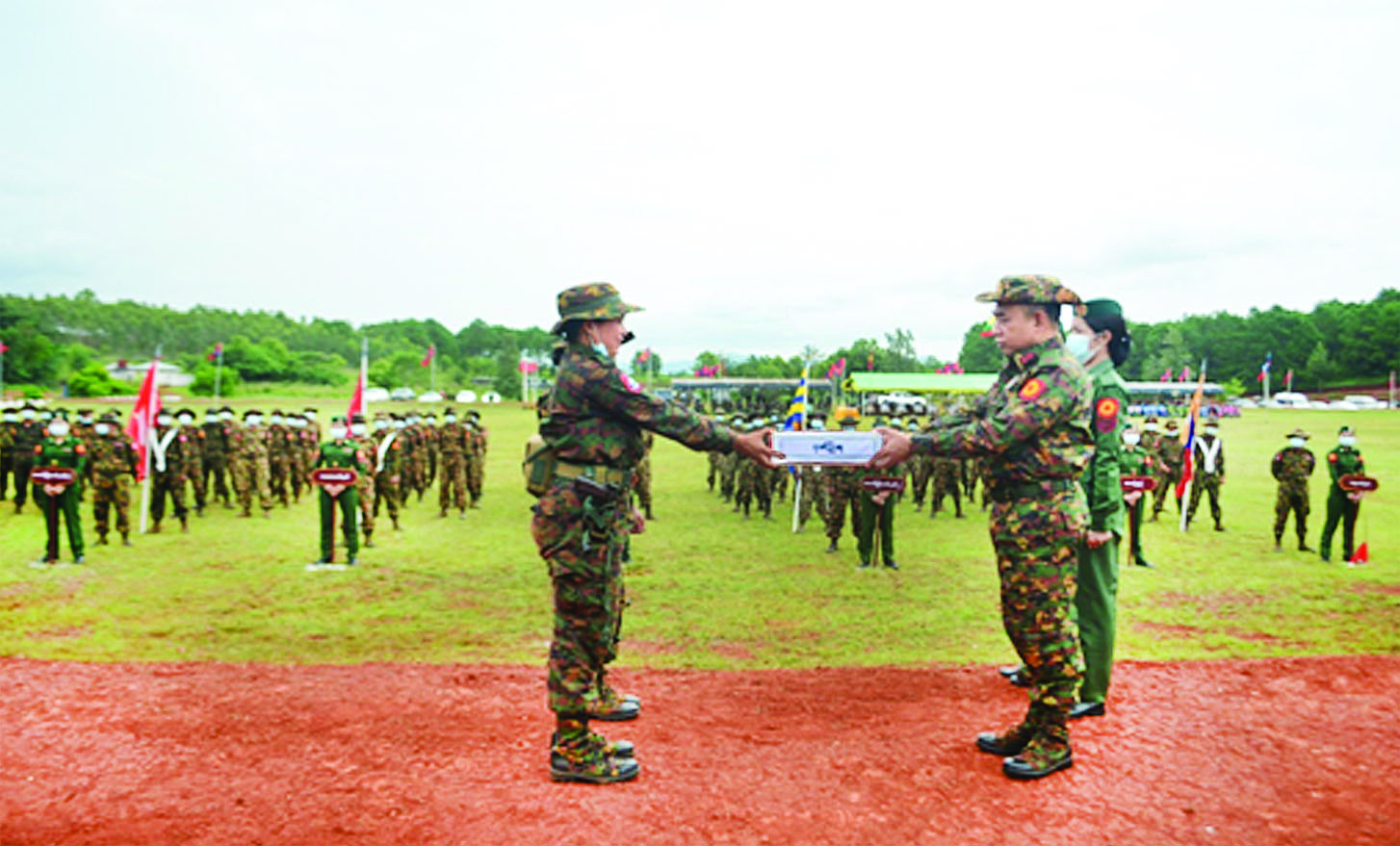 အရှေ့ပိုင်းတိုင်းစစ်ဌာနချုပ်၏ ၂၀၂၂ ခုနှစ် တိုင်းမှူးဒိုင်း (အမျိုးသား/ အမျိုးသမီး) သေနတ်ပစ်ပြိုင်ပွဲ ဖွင့်ပွဲကို ယနေ့နံနက်ပိုင်းက ဗထူးတပ်နယ်ရှိ နယ်မြေခံ သင်တန်းကျောင်းဝင်း စက်ပစ်ကွင်း၌ ပြုလုပ်ရာ ဒုတိယတိုင်းမှူး ဗိုလ်မှူးချုပ် ဝင်းဇော်မိုးနှင့် အရာရှိ၊ စစ်သည်၊ မိသားစုများ၊ ဒိုင်အဖွဲ့ဝင်များနှင့် ပြိုင်ပွဲဝင် အသင်းများ တက်ရောက်ကြသည်။