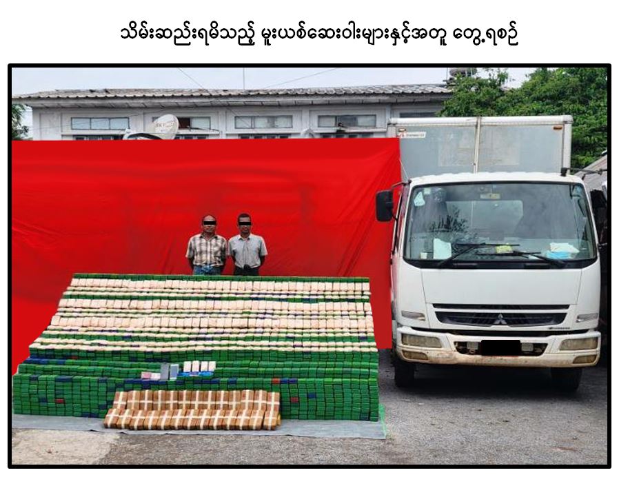 မူးယစ်ဆေးဝါးတားဆီးနှိမ်နင်းရေးရဲတပ်ဖွဲ့မှ တပ်ဖွဲ့ဝင်များပါဝင်သော ပူးပေါင်းအဖွဲ့သည် ဇွန် ၁၁ ရက် နံနက် ၁၀ နာရီခွဲတွင် မန္တလေးတိုင်းဒေသကြီး၊ အမရပူရမြို့နယ်၊ မြစ်ငယ်စစ်ဆေးရေးဂိတ်အနီးတွင် ဘိုမြိုင် မောင်းနှင်ပြီး အောင်မင်းဇော် လိုက်ပါလာသည့် FUSO FIGHTER ၆ ဘီးကွန်တိန်နာဘောက် မော်တော်ယာဉ်ကို သတင်းအရရှာဖွေရာ ယာဉ်ပေါ်မှ ဒေသကာလတန်ဖိုး ငွေကျပ် ၁ ဒသမ ၆ ဘီလီယံကျော်တန်ဖိုးရှိ ဘိန်းဖြူ ၄၀ ဒသမ ၇ ကီလိုနှင့် စိတ်ကြွရူးသွပ်ဆေးပြား ၄ သိန်း သိမ်းဆည်းရမိခဲ့ကြောင်း၊ စစ်ဆေးဖော်ထုတ်ချက်အရ သိမ်းဆည်းရမိ မူးယစ်ဆေးဝါးများအား ရှမ်းပြည်နယ်(မြောက်ပိုင်း)မှ စစ်ကိုင်းတိုင်းဒေသကြီးသို့ သယ်ဆောင်ခြင်းဖြစ်ကြောင်း သိရှိရသဖြင့် ၎င်းတို့အား ဥပဒေအရအရေးယူထားရှိပြီး ကွင်းဆက်ပြစ်မှုကျူးလွန်သူများအား ဆက်လက်စစ်ဆေး ဖော်ထုတ်လျက်ရှိကြောင်း သိရသည်။