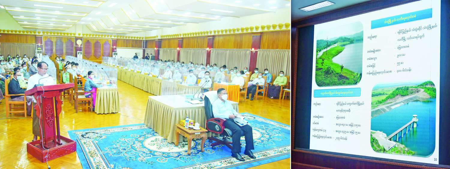 ထို့နောက် နိုင်ငံတော်စီမံအုပ်ချုပ်ရေးကောင်စီ ဒုတိယဥက္ကဋ္ဌ၊ ဒုတိယတပ်မတော် ကာကွယ်ရေးဦးစီးချုပ်၊ ကာကွယ်ရေးဦးစီးချုပ်(ကြည်း)က အမှာစကားပြောကြားရာတွင် ရခိုင်ပြည်နယ်သို့ လာရောက်ရခြင်းသည် ပြည်နယ်အစိုးရအဖွဲ့နှင့် ဌာနဆိုင်ရာများ နိုင်ငံတော်စီမံအုပ်ချုပ်ရေးကောင်စီ၏ ရှေ့လုပ်ငန်းစဉ်(၅)ရပ်နှင့် ဦးတည်ချက်(၉)ရပ်တို့အပေါ် အကောင်အထည်ဖော် ဆောင်ရွက်နေမှု အခြေအနေများ၊ တွေ့ကြုံရသည့် အခက်အခဲများနှင့် ဖြေရှင်းဆောင်ရွက်နေမှုများကို သိရှိရန်နှင့် လိုအပ်ချက်များ ဖြည့်ဆည်းဆောင်ရွက်ပေးရန် လာရောက်ခြင်းဖြစ်ကြောင်း၊ ရခိုင်ပြည်နယ်သည် စတုရန်းမိုင် ၁၄၈၀၀ ကျော်ရှိပြီး ကမ်းရိုးတန်းဒေသဖြစ်၍ ကျွန်းပေါင်း ၁၄၄ ကျွန်းတွင် လူနေထိုင်သည့် ကျွန်း ၉၄ ကျွန်းရှိပါကြောင်း၊ ရေလုပ်ငန်းသည် အဓိကလုပ်ငန်းဖြစ်ပြီး စိုက်ပျိုးမွေးမြူရေးလုပ်ငန်းများလည်း လုပ်ကိုင်ဆောင်ရွက်လျက်ရှိကြောင်း၊ ဒေသတစ်ခုဖွံ့ဖြိုးရန်မှာ စီးပွားကောင်းမွန်ရန်လိုအပ်ပြီး စီးပွားရေးကောင်းမွန်ရန်အတွက်လည်း တည်ငြိမ်အေးချမ်းမှုသည် အရေးကြီးကြောင်း၊ ရရှိထားသည့် တည်ငြိမ်အေးချမ်းမှုကို မပျက်စီးစေရန် အားလုံးပါဝင် ဝိုင်းဝန်းထိန်းသိမ်းကြရန်လိုကြောင်း၊ စီးပွားရေးနှင့်ပတ်သက်၍ ကိုဗစ်-၁၉ ရောဂါကြောင့် ကမ္ဘာ့တစ်ဝှမ်း စီးပွားရေးထိခိုက်မှုများရှိခဲ့ကြောင်း၊ မိမိတို့နိုင်ငံသည်လည်း ကိုဗစ်-၁၉ တတိယလှိုင်းတွင် အခက်အခဲများစွာကြားမှ ရုန်းကန်ကျော်ဖြတ်နိုင်ခဲ့သော်လည်း စီးပွားရေး ကဏ္ဍတွင် ထိခိုက်ခဲ့မှုများရှိကြောင်း၊ ကိုဗစ်-၁၉ တတိယလှိုင်းမှ ရုန်းထွက်ခဲ့မှုတွင် တိုင်းရင်းသား ပြည်သူများနှင့် တာဝန်သိနိုင်ငံ့ဝန်ထမ်းများ၏ ပူးပေါင်းဆောင်ရွက်ခဲ့မှုသည် အဓိကအခန်းကဏ္ဍတွင် ပါဝင်ကြောင်း၊ နိုင်ငံတော်ဝန်ကြီးချုပ်ပြောကြားခဲ့သည့် ပြည်အင်အားသည် ပြည်တွင်းမှာ သာရှိသည်” ဟူသော စကားအတိုင်း တိုင်းရင်းသားပြည်သူအားလုံး၏ စည်းလုံးညီညွတ်မှုသည် အရာရာကို ကျော်လွှားနိုင်မည်ဖြစ်ကြောင်း၊ လုပ်ငန်းများဆောင်ရွက်ရာတွင် ရေတိုလုပ်ငန်းနှင့် ရေရှည်ဆောင်ရွက်ရမည့်လုပ်ငန်းများရှိပြီး ရေရှည်ဆောင်ရွက်ရမည့် လုပ်ငန်းများကို စီမံကိန်းစနစ်တကျရေးဆွဲကာ အပိုင်းလိုက်ဆောင်ရွက်သွားရန်လိုကြောင်း၊ ရေတိုဆောင်ရွက်ရမည့် လုပ်ငန်းများအတွက် လျင်လျင်မြန်မြန်အင်တိုက်အားတိုက်ဖြင့် ထင်သာမြင်သာ ရှိသော Quich Win အကျိုးတရားရရှိအောင် အကောင်အထည်ဖော် ဆောင်ရွက်ရမည်ဖြစ်ကြောင်း၊ ရေလုပ်ငန်းသည် ပြည်နယ်၏ အားသာချက်တစ်ခုအဖြစ် ဒေသခံပြည်သူ့အများစု လုပ်ကိုင်သောလုပ်ငန်းဖြစ်ကြောင်း၊ မိရိုးဖလာသမားရိုးကျ လုပ်ကိုင်မှုအစား သိပ္ပံနည်းကျအဆင့်မြှင့်တင်၍ ကျွ