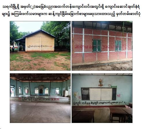နိုင်ငံတော်အစိုးရအနေဖြင့် နိုင်ငံ၏အနာဂတ်ဖြစ်သည့် မျိုးဆက်သစ်ရင်သွေးငယ်များ၏ ပညာရေးတွင် နောက်ကျကျန်ရစ်မှု မဖြစ်ပေါ်စေရေးအတွက် ပညာသင်ကြားနိုင်မှု အခွင့်အလမ်းကို ပြည့်ဝစွာအသုံးချနိုင်စေရန် အခြေခံပညာကျောင်းများကို ဇွန်လ ၂ ရက်တွင် စတင်ဖွင့်လှစ်သင်ကြားပေးလျက်ရှိရာ NUG နှင့် ၎င်း၏လက်အောက်ခံ နိုင်ငံရေးအစွန်းရောက်အကြမ်းဖက်များက အနာဂတ်ရင်သွေးငယ်များ၏ ပညာသင်ကြားသင်ယူခွင့် အခွင့်အလမ်းများ ပျက်ပြား၍ ပညာမဲ့လူတန်းစားများ ဖြစ်ပေါ်လာစေရန်နှင့် ကျောင်းသား၊ ကျောင်းသူ၊ ဆရာ၊ မိဘများအား အထိတ်တလန့်ဖြစ်စေရန် ယုတ်မာရိုင်းစိုင်းသော ရည်ရွယ်ချက်များဖြင့် စာသင်ကျောင်းများတွင် ဆန့်ကျင်ခြိမ်းခြောက်စာများ ရေးသားချိတ်ဆွဲ၍ ခြိမ်းခြောက်အကြမ်းဖက်ခြင်းများ လုပ်ဆောင်လျက်ရှိသည်ကို တွေ့ရှိရသည်။