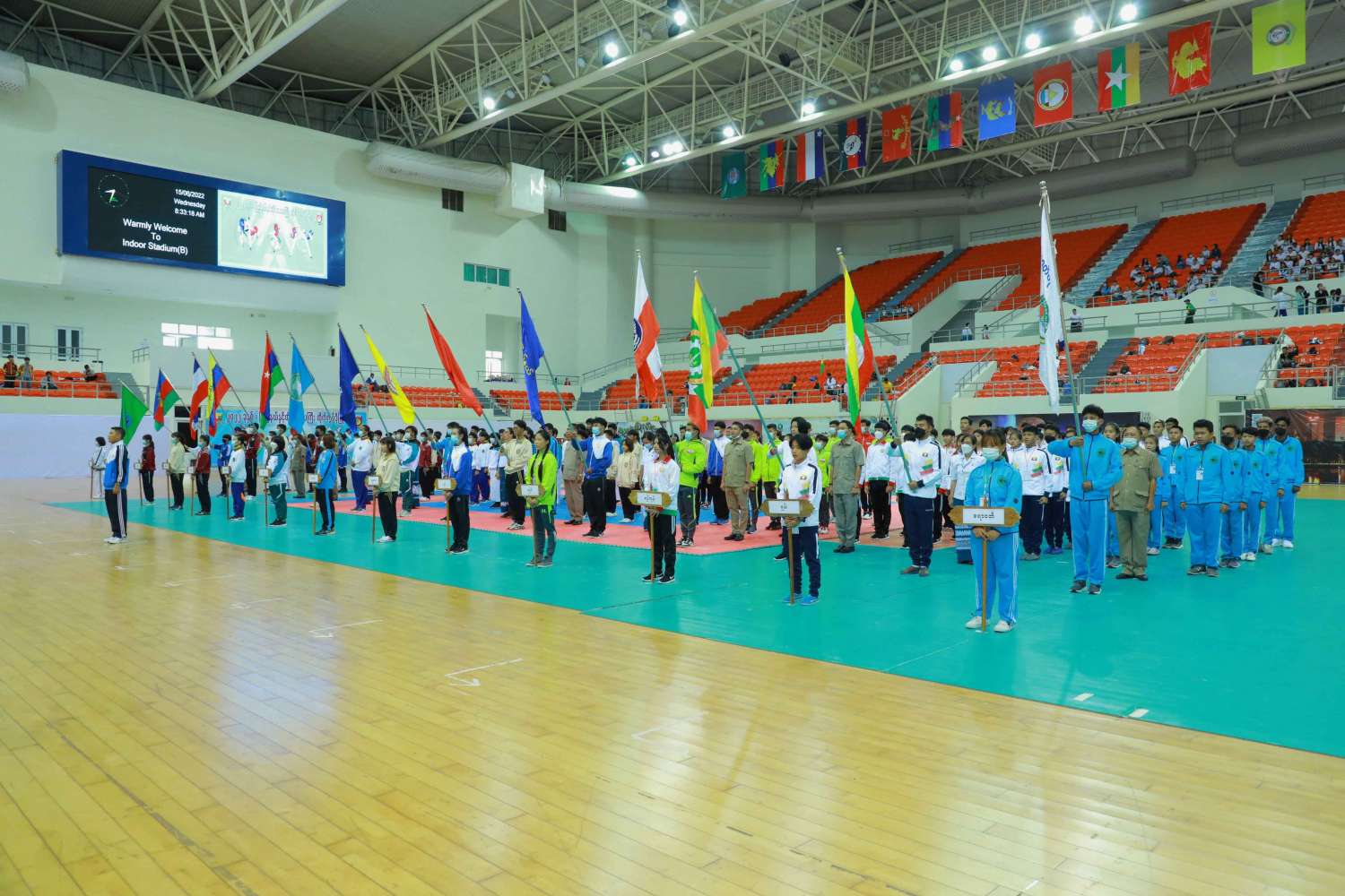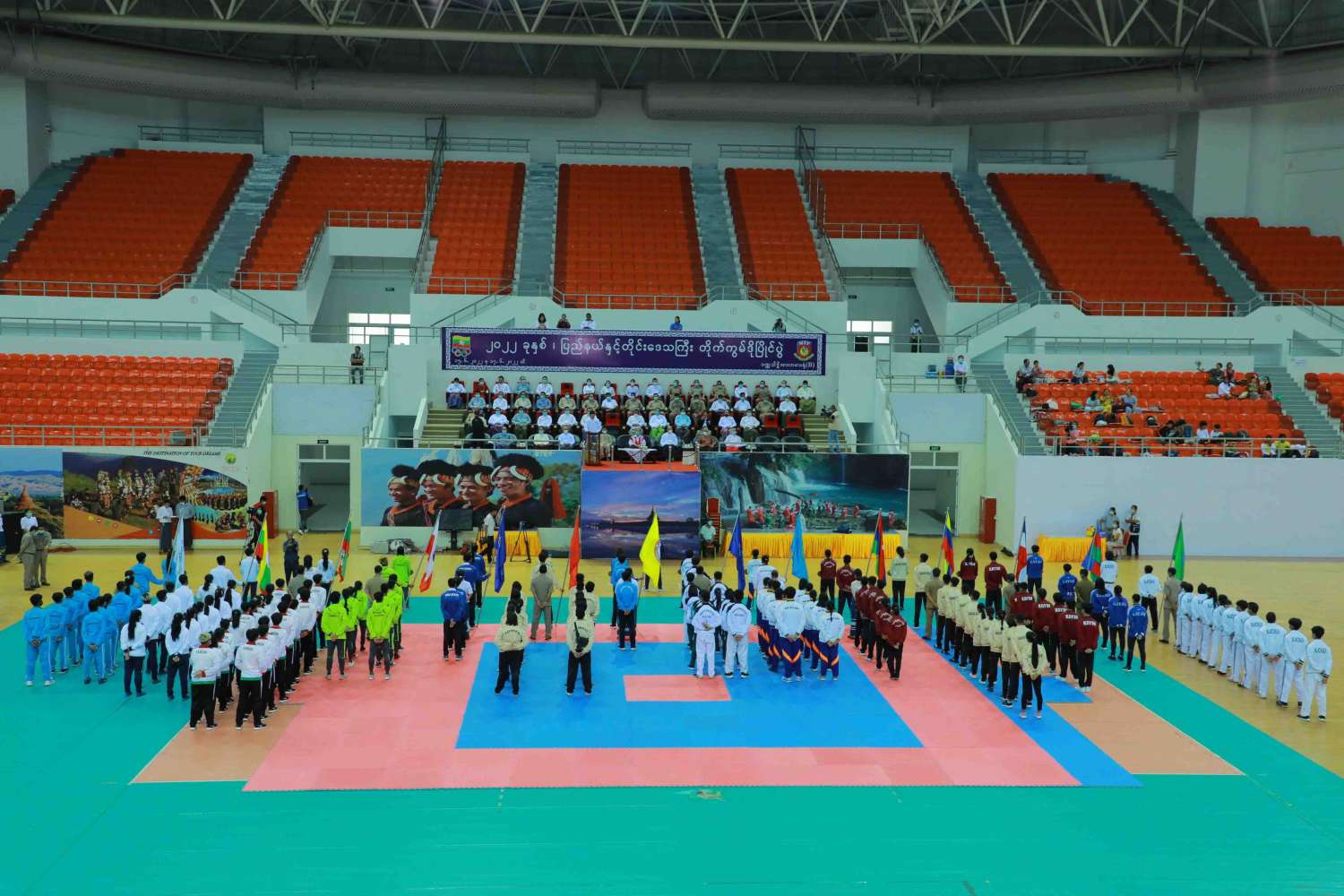 ၂၀၂၂ ခုနှစ် ပြည်နယ်နှင့်တိုင်းဒေသကြီး တိုက်ကွမ်ဒိုပြိုင်ပွဲ ဖွင့်ပွဲအခမ်းအနားကို ယနေ့ နံနက်ပိုင်းတွင် နေပြည်တော်ရှိ ဝဏ္ဏသိဒ္ဓိအားကစားရုံ(B)၌ ကျင်းပသည်။