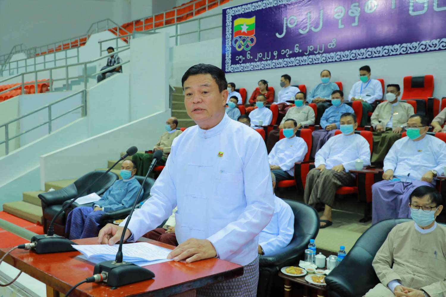 အခမ်းအနားတွင် ပြည်ထောင်စုဝန်ကြီး ဦးမင်းသိန်းဇံက ကိုယ်ခံပညာ အားကစားနည်း တစ်ရပ်ဖြစ်သည့် တိုက်ကွမ်ဒို အားကစားနည်းသည် ကိုယ်ခန္ဓာ ကြံ့ခိုင်ဖွံ့ဖြိုး တိုးတက်စေသည့်အပြင် စည်းကမ်းလိုက်နာမှု၊ အမိန့်နာခံတတ်မှုနှင့် ကိုယ်ကျင့်တရား ကောင်းမွန်မှု စသည့် လူ့ကျင့်ဝတ်သိက္ခာများ တိုးတက်မှုကို များစွာ အထောက်အကူပြုကြောင်း၊ မြန်မာနိုင်ငံ တိုက်ကွမ်ဒိုအဖွဲ့ချုပ်၏ စည်းရုံးဆောင်ရွက်မှုများကြောင့် နှစ်အနည်းငယ်အတွင်း ထူးချွန်ထက်မြတ်သည့် မြန်မာ့လက်ရွေးစင် တိုက်ကွမ်ဒိုအားကစားသမားများ ပေါ်ထွက်လာပြီး နိုင်ငံ့ဂုဏ်ဆောင်နိုင်ခဲ့သည်ကို တွေ့ရှိရကြောင်း၊ မြန်မာ့လက်ရွေးစင် တိုက်ကွမ်ဒို အားကစားသမားများသည် အရှေ့တောင်အာရှ အားကစားပြိုင်ပွဲများသာမက နိုင်ငံတကာ အားကစားပြိုင်ပွဲများတွင်လည်း ထိုးဖောက်အောင်မြင်ခဲ့ပြီး 31st SEA Games ပြိုင်ပွဲတွင် ငွေတံဆိပ်(၁)ခုနှင့် ကြေးတံဆိပ်(၃)ခု ရရှိခဲ့ကြောင်း၊ နိုင်ငံတော်မှ မြန်မာ့အားကစားကို အစွမ်းကုန် အားပေးချီးမြှောက်နေသည့် အချိန်ကာလဖြစ်သည့်အတွက် အားကစားသမားများအနေဖြင့် မိမိတို့၏ အစွမ်းအစ၊ အရည်အသွေးများကို အစွမ်းကုန် ဖော်ထုတ်ပြသပြီး မိမိတို့ကိုယ်စားပြုသည့် ပြည်နယ်နှင့်တိုင်းဒေသကြီး အနိုင်ရရှိစေရေး အားကစားစိတ်ဓာတ်အပြည့်ဖြင့် အသန့်ရှင်းဆုံး ပါဝင်ယှဉ်ပြိုင်သွားကြရန်နှင့် ပြည်နယ်နှင့် တိုင်းဒေသကြီး ပြိုင်ပွဲများမှတစ်ဆင့် နိုင်ငံတော်က အားထားရသည့် နိုင်ငံ့ဂုဏ်ဆောင် လက်ရွေးစင် အားကစားသမားကောင်းများ ဖြစ်လာအောင် ကြိုးစားသွားကြရန် တိုက်တွန်းပါကြောင်း ပြောကြားသည်။