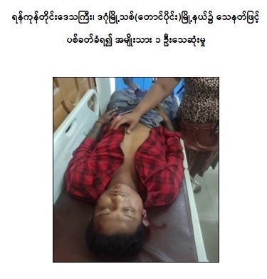 ထို့ပြင် ယနေ့နံနက် ၈ နာရီ ၁၀ မိနစ်ခန့်တွင် ရန်ကုန်တိုင်းဒေသကြီး၊ ဒဂုံမြို့သစ် (ဆိပ်ကမ်း)မြို့နယ်နေ ကိုဘိုမင်းသူ(၃၅)နှစ် (ဘ)ဦးဇော်မင်းဦးသည် ၎င်း၏သားဖြစ်သူအား ကျောင်းသို့ပို့ဆောင်ပြီး ပြန်လာစဉ် ဒဂုံမြို့သစ် (တောင်ပိုင်း)မြို့နယ်၊ အမှတ်(၇၀)ရပ်ကွက်၊ ကျောင်းလမ်းနှင့် အောင်ချမ်းသာ(၂) လမ်းထောင့်သို့ အရောက်၌ မော်တော်ဆိုင်ကယ် စီးနင်းလာသည့် အကြမ်းဖက်အမျိုးသား ၃ ဦးက သေနတ်ဖြင့် ပစ်ခတ်ထွက်ပြေးသွားခဲ့ရာ ကိုဘိုမင်းသူတွင် ကျည်ထိမှန်ဒဏ်ရာများ ရရှိခဲ့သဖြင့် သင်္ဃန်းကျွန်းမြို့နယ် စံပြဆေးရုံသို့ ပို့ဆောင်ဆေးကုသမှု ခံယူနေစဉ် သေဆုံးသွားခဲ့ကြောင်း သိရသည်။
