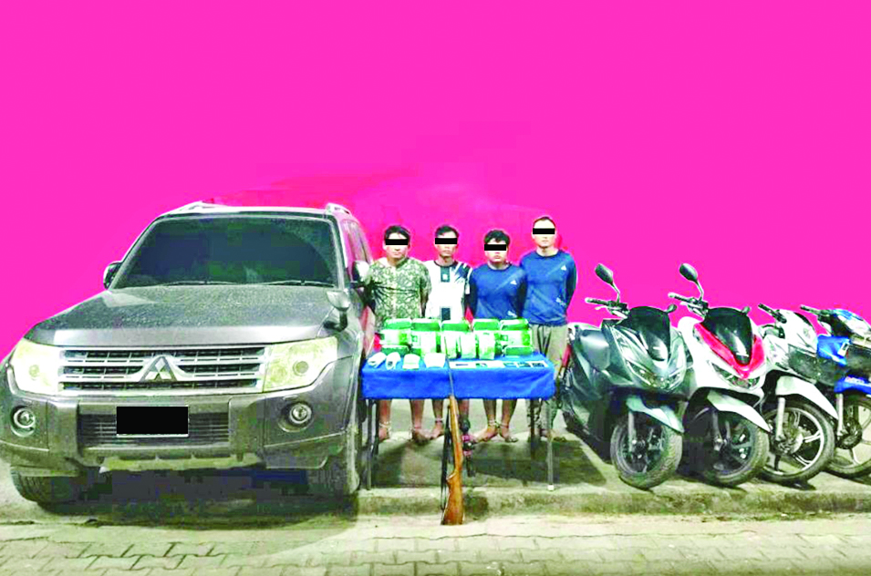 ထို့အတူ ဇွန် ၁၃ ရက် ည ၇ နာရီ မိနစ် ၄၀ တွင် မူးယစ်ဆေးဝါး တားဆီးနှိမ်နင်းရေး ရဲတပ်ဖွဲ့မှ တပ်ဖွဲ့ဝင်များပါဝင်သော ပူးပေါင်းအဖွဲ့သည် တာချီလိတ်မြို့နယ် မိုင်းဖုန်း(က) ကျေးရွာအုပ်စု ဝမ်တုံကျေးရွာရှိ အိုက်ထွန်း (ခ)အိုက်ခမ်း၏ ဂိုဒေါင်သို့ ဝင်ရောက်ရှာဖွေရာ ၎င်းအားမတွေ့ရှိရဘဲ ဂိုဒေါင်စောင့် အိုက်ကျိုင်း(ခ) ကျိုင်းဟွန်၊ အိုက်ကျိုင်း(ခ) အိုက်ထွင်း၊ စိုင်းနုတ်(ခ) စိုင်းဗစ်နှင့် အိုက်အွန်တို့ လေးဦးကို တွေ့ရှိရပြီး ဂိုဒေါင်အတွင်းရှိ Mitsubishi Pajero အမျိုးအစားမော်တော်ယာဉ် နောက်ခန်းအတွင်းမှ ကတ်တမင်း ကီလို ၃၀ နှင့် ဂိုဒေါင်အတွင်းမှ ပွိုင့်-၂၂ ပြောင်းရှည်သေနတ်တစ်လက် (မှန်ပြောင်းတပ်လျက်)၊ ၎င်းကျည်အိမ် တစ်ခု၊ ၎င်းကျည် ခုနစ်တောင့်နှင့် မော်တော်ဆိုင်ကယ် လေးစီးတို့ကို လည်းကောင်း။