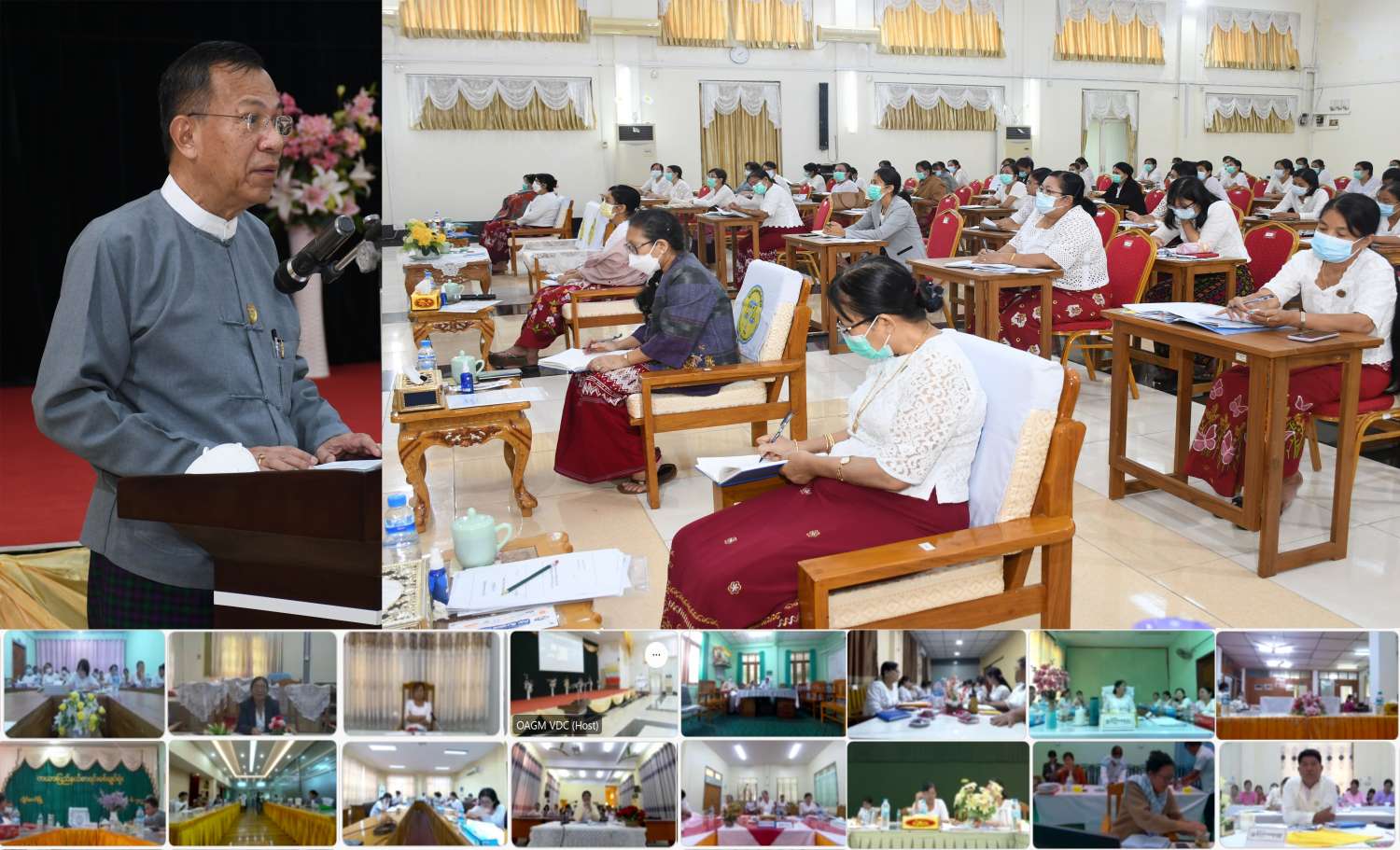 ဆွေးနွေးပွဲသို့ ဒုတိယအမြဲတမ်းအတွင်းဝန်၊ ဒုတိယ ညွှန်ကြားရေးမှူးချုပ်များ (စစ်ဆေးရေး/ စီမံ)၊ ညွှန်ကြားရေးမှူးများ၊ ဒုတိယညွှန်ကြားရေးမှူးများ၊ လက်ထောက် ညွှန်ကြားရေးမှူးများ၊ ဦးစီးအရာရှိများနှင့် စာရင်းစစ်မှူးများသည် ကိုဗစ်-၁၉ ရောဂါကာကွယ်ရေးစည်းမျဉ်းများနှင့်အညီ စုပေါင်းခန်းမနှင့် နေပြည်တော် သင်တန်းကျောင်းခန်းမ(၂)ခု၊ မြန်မာနိုင်ငံ စာရင်းကောင်စီရုံးခန်းနှင့် တိုင်းဒေသကြီး/ ပြည်နယ် စာရင်းစစ်ချုပ်ရုံးတို့မှ Virtual စနစ်ဖြင့် တက်ရောက်ကြကြောင်း သိရသည်။