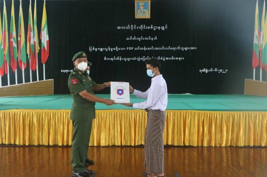 PDF အပါအဝင် အဖွဲ့အစည်း အမျိုးမျိုးတို့အနေဖြင့် နိုင်ငံတော်၏ ရှေ့လုပ်ငန်းစဉ်များတွင် ပါဝင်ပူးပေါင်း ဆောင်ရွက်နိုင်ရေး သတ်မှတ်စည်းကမ်းချက်များနှင့်အညီ ဥပဒေဘောင်အတွင်းသို့ လက်နက်အပ်နှံပြီး ပြည်သူ့ဘဝသို့ ပြန်လည်ဝင်ရောက်ခြင်း ပြုမည်ဆိုပါက ကြိုဆိုလက်ခံသွားမည် ဖြစ်ကြောင်း နိုင်ငံတော်အစိုးရက ထုတ်ပြန်ထားပြီးဖြစ်ရာ ပြစ်မှုကျူးလွန်ခဲ့ခြင်း မရှိသော PDF အဖွဲ့ဝင်များက တိုင်းဒေသကြီးနှင့် ပြည်နယ်အသီးသီး၌ ဥပဒေဘောင်အတွင်း ပြန်လည်ဝင်ရောက်လျက် ရှိကြသဖြင့် သက်ဆိုင်ရာ တာဝန်ရှိသူများက ၎င်းတို့၏ မိဘအုပ်ထိန်း သူများထံသို့ လွှဲပြောင်း အပ်နှံပေးလျက်ရှိကြောင်း သတင်းရရှိသည်။