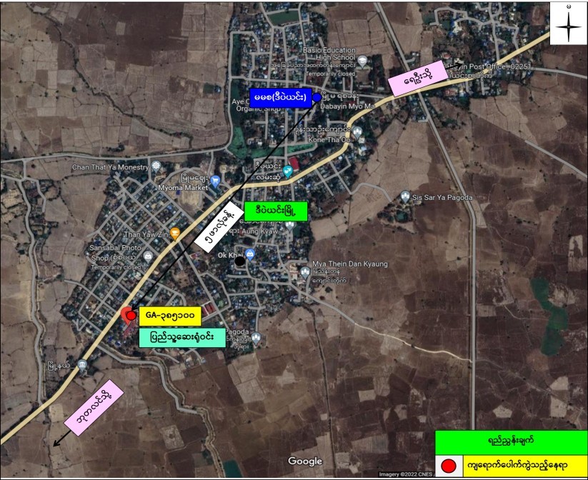 ဇွန်လ ၁၅ ရက် မွန်းလွဲပိုင်းက စစ်ကိုင်းတိုင်းဒေသကြီး၊ ဒီပဲယင်းမြို့ရှိ မြို့နယ် ပြည်သူ့ဆေးရုံဝင်းအတွင်းသို့ PDF အမည်ခံ အကြမ်းဖက်သမားများ ပစ်ခတ်ခဲ့သည့် လက်လုပ်စိန်ပြောင်းကျည်တစ်လုံး ကျရောက်ပေါက်ကွဲခဲ့၍ ဆေးရုံဝင်းအတွင်းရှိ ဓာတ်မှန်ဆောင်အမိုးနှင့် မျက်နှာကျက်တို့ ထိခိုက်ပျက်စီးခဲ့ကြောင်း သိရသည်။