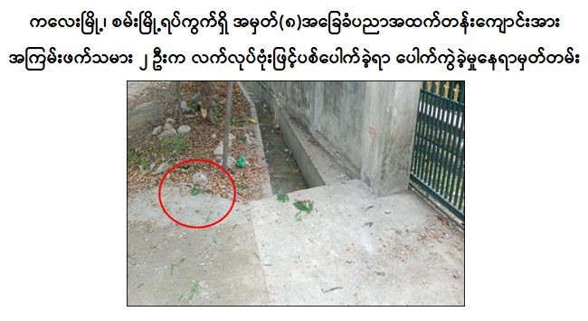 ထို့ပြင် ဇွန်လ ၁၅ ရက်နေ့ နံနက် ၈ နာရီခွဲတွင် ကချင်ပြည်နယ်၊ ဖားကန့်မြို့နယ်၊ မဇွပ်ယန်ကျေးရွာရှိ အခြေခံပညာအလယ်တန်းကျောင်းခွဲ ဝင်ပေါက်အနီးရှိ လျှပ်စစ်ဓာတ်တိုင်ပေါ်၌ “ကျောင်းတက်နေသည့် ကလေးသူငယ်များ ကျောင်းတက်ရောက်ခြင်းမပြုရန်၊ မိဘများမှလည်း မိမိတို့၏ကလေးများအား ကျောင်းထားခြင်းမပြုရန်၊ NUG ၏လမ်းညွှန်ချက် များအားလိုက်နာရန်နှင့် ကျောင်းတက်နေသည့် ကလေးသူငယ်များအပေါ် ကျရောက်လာသည့် အန္တရာယ်များအား ၎င်းတို့မှ တာဝန်မယူကြောင်း” ရေးသားထားသည့် A-4 စာရွက်တစ်ရွက်အား ကပ်ထားသည်ကိုတွေ့ရှိရသဖြင့် ဖယ်ရှားရှင်းလင်းခဲ့ကြောင်းနှင့် အဆိုပါကျောင်း၌ ကျောင်းသား/ကျောင်းသူ ၂၅၃ ဦး ပညာသင်ကြားလျက်ရှိကြောင်း သိရသည်။