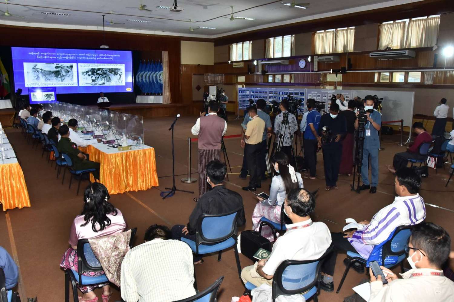အဆိုပါသတင်းစာရှင်းလင်းပွဲတွင် သတင်းမီဒီယာများ မှီငြမ်းကိုးကားနိုင်ရေးအတွက် PDF အပါအဝင် အဖွဲ့အစည်း အမျိုးမျိုးအမည်ခံ လက်နက်ကိုင် ဆန့်ကျင်လျက်ရှိသည့် အဖွဲ့အစည်းများမှ ဥပဒေဘောင်အတွင်းဝင်ရောက်လာသူများနှင့် ပတ်သက်၍ သတိပေး ထုတ်ပြန်ရသည့် အချက်အလက်များ၊ ငြိမ်းချမ်းရေးဆိုင်ရာကိစ္စရပ်များ၊ တာဝန်မှ ကင်းကွာနေသည့် အခြေခံပညာရေး ဝန်ထမ်းများအား ပြန်လည်ဖိတ်ခေါ်သည့်အခြေအနေများ၊ ရွေးကောက်ပွဲ ကော်မရှင်၏ ဆောင်ရွက်ချက် မှတ်တမ်းဓာတ်ပုံများကို ခင်းကျင်းပြသထားရှိရာ တက်ရောက်လာကြသူများက လိုက်လံကြည့်ရှု လေ့လာခဲ့ကြကြောင်းနှင့် သတင်းစာရှင်းလင်းပွဲပြုလုပ်မှု၊ မေးမြန်းဖြေကြားမှု အပြည့်အစုံကို ဆက်လက် ဖော်ပြသွားမည်ဖြစ်ကြောင်း သတင်းရရှိသည်။