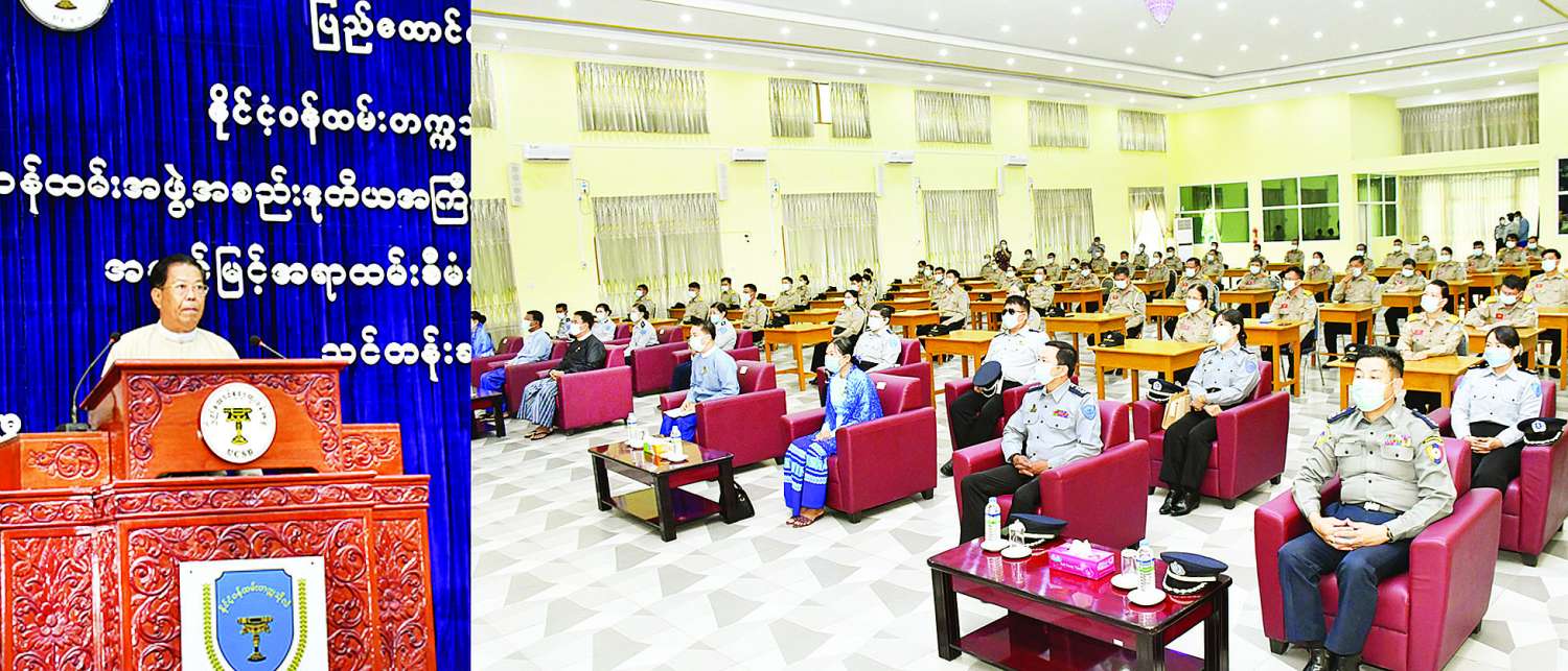 အဆင့်မြင့် အရာရှိကြီးများသည် ဝန်ကြီးဌာန/အဖွဲ့အစည်းများ၏ ရည်မှန်းချက်၊ ရည်ရွယ်ချက်များကို အောင်မြင်ရန် အဓိကကျသည့် စီမံခန့်ခွဲမှုကဏ္ဍက ဆောင်ရွက်နေကြသူများဖြစ်သဖြင့် တိုင်းပြည်ဖွံ့ဖြိုးတိုးတက်ရေးအတွက် ဝိုင်းဝန်းကြိုးပမ်း ဆောင်ရွက်ကြရန်လိုအပ်ပါကြောင်း၊ အဆင့်ဆင့်သော ဝန်ထမ်းများကို ပြည်သူလူထုနှင့်ဆက်ဆံရေး ကောင်းမွန်ရန်၊ လုပ်ငန်းများ အောင်မြင်မှုရရှိရန်နှင့် တစ်ဦးချင်းစီ၏ အရည်အသွေးနှင့် စိတ်ဓာတ်ကိုမြှင့်တင်ပေးပြီး ဝန်ထမ်းဘဝတစ်လျှောက် လမ်းကြောင်းမှန်ပေါ် လျှောက်လှမ်းတတ်စေရန် ထိန်းကျောင်းတည့် မတ်ပေးကြပြီး ကောင်းမွန်သော ခေါင်းဆောင်မှုပေးရန် လိုပါကြောင်း။ မိမိကိုယ်တိုင်လည်းကျရာကဏ္ဍကနေ တာဝန်ကျေပွန်စွာ ထမ်းရွက်နိုင်ရုံမက စေတနာကောင်းများဖြင့် တာဝန်ယူမှု၊ တာဝန်ခံမှုရှိစွာ ပူးပေါင်းဆောင်ရွက်ကြရန်လည်း လိုအပ်ကြောင်း။
