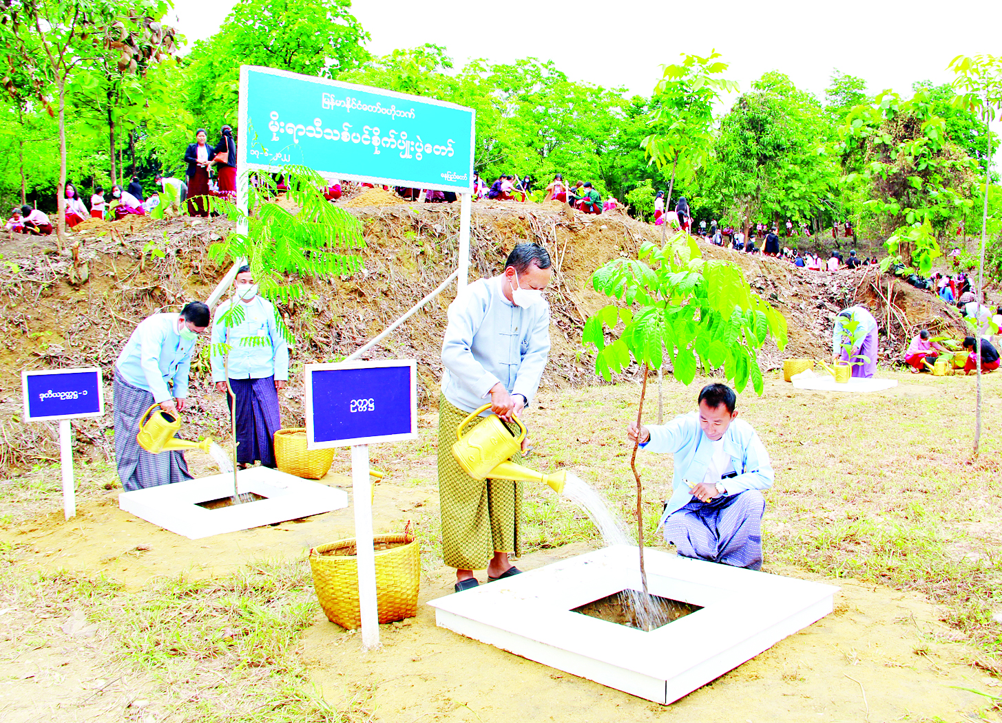 ယနေ့ကျင်းပသည့် မြန်မာနိုင်ငံတော်ဗဟိုဘဏ် မိုးရာသီသစ်ပင်စိုက်ပျိုးပွဲတွင် ရတနာတန်းဝင်ကျွန်း၊ မဟော်ဂနီ၊ စိန်ပန်း၊ စွယ်တော်ပင် စုစုပေါင်းအပင် ၃၅၀ စိုက်ပျိုးခဲ့ကြောင်း သိရသည်။