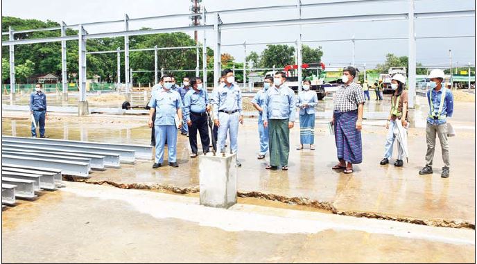 နေပြည်တော်စည်ပင်သာယာရေးကော်မတီ ဒုတိယမြို့တော်ဝန် ဦးမောင်မောင်သည် ယနေ့မွန်းလွဲပိုင်းက နေပြည်တော် ပျဉ်းမနား မြို့နယ် အာဟာရသုခဈေးရှိ ညောင်ပင်ကွင်း ပျံကျဈေးနေရာတွင် Steel Structure (၂၃၂'x ၁၆၀') နှင့် (၁၆၀'x ၈၆',၇၀') အဆောက်အအုံနှစ်လုံး ဆောက်လုပ်သည့်နေရာကို သွားရောက်ကြည့်ရှုသည်။
