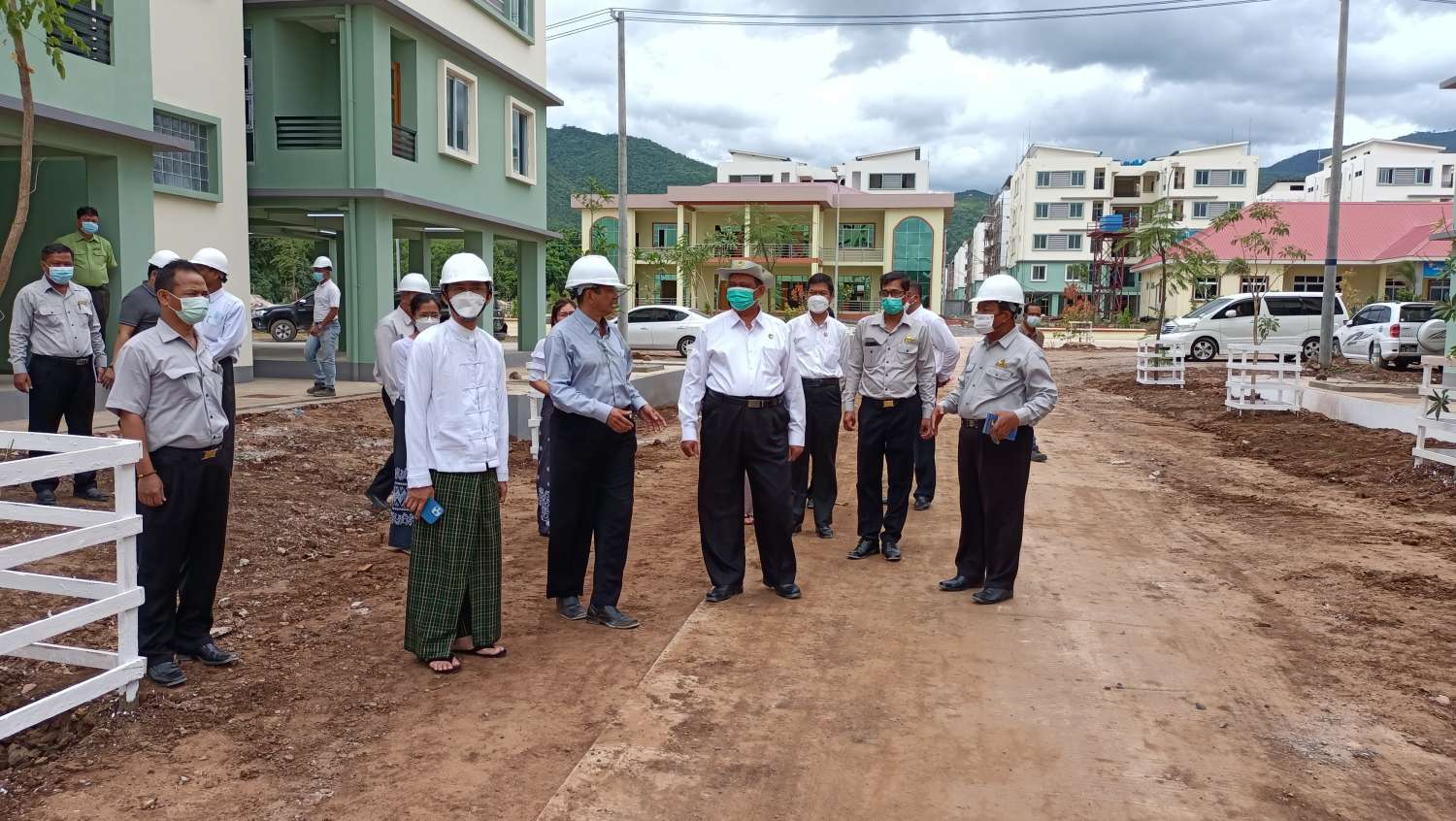 ယခု ဆောက်လုပ်ရေးဝန်ကြီးဌာန၊ မြို့ပြနှင့်အိမ်ရာဖွံ့ဖြိုးရေးဦးစီးဌာနနှင့် မြန်မာမြို့ပြနှင့် အခြေခံအဆောက်အအုံ ဖွံ့ဖြိုးရေးလုပ်ငန်းရှင်များ အသင်းတို့ ပူးပေါင်း၍ အဆောက်အဦ (၁၈၈) လုံး၊ အခန်း (၃၀၀၈) ခန်းအနက် ပထမအဆင့်အနေဖြင့် အဆောက်အဦ (၉၁)လုံး၊ အခန်းပေါင်း (၁၄၅၆) ခန်း အကောင်အထည်ဖော် ဆောင်ရွက်ပြီးစီးမှုကို လာရောက်ကြည့်ရှု စစ်ဆေးခြင်း ဖြစ်ကြောင်း၊ လုပ်ငန်းဆောင်ရွက်စဉ် တွေ့ကြုံရသည့် အခက်အခဲများနှင့် ဘဏ္ဍာရေးဆိုင်ရာ ကိစ္စရပ်များကို တိုင်းဒေသကြီးအစိုးရအဖွဲ့၊ သက်ဆိုင်ရာ ဝန်ကြီးဌာနများနှင့် ပေါင်းစပ်ညှိနှိုင်း ဆောင်ရွက်ပေးမည်ဖြစ်ကြောင်း၊ ရေ၊ မီး ရရှိရေး ဦးစားပေးဆောင်ရွက်ရန်နှင့် အိမ်ရာစီမံကိန်းအတွင်း အရိပ်ရသစ်ပင်များစိုက်ပျိုးပေးရန် ညှိနှိုင်းဆောင်ရွက်ကြရမည် ဖြစ်ကြောင်း၊ အိမ်ရာ စီမံကိန်း လုပ်ငန်းများ အောင်မြင်စွာပြီးစီးရေး ဝိုင်းဝန်းပူးပေါင်း ဆောင်ရွက်ကြရမည်ဖြစ်ကြောင်း မှာကြားပြီး တည်ဆောက်ပြီး အိမ်ရာစီမံကိန်းများနှင့် ဆက်လက် ဆောင်ရွက်နေသည့် အိမ်ရာ စီမံကိန်းများကို ကြည့်ရှုစစ်ဆေးသည်။