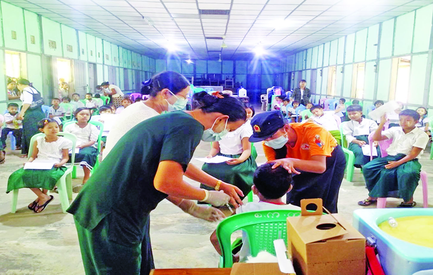 ထို့အတူ ကျောင်းသား ကျောင်းသူများကိုလည်း ကိုဗစ်-၁၉ ရောဂါကာကွယ်ဆေးများ ထိုးနှံပေးလျက်ရှိရာ ယနေ့တွင် ရှမ်းပြည်နယ်(မြောက်ပိုင်း)အတွင်းရှိ မြို့နယ် ၁၅ မြို့နယ်တို့၌ ကျောင်းသား ကျောင်းသူ ၈၂၈၈ ဦး၊ ဧရာဝတီတိုင်းဒေသကြီးအတွင်းရှိ မြို့နယ် ၂၆ မြို့နယ်တို့၌ ကျောင်းသား ကျောင်းသူ ၇၂၉၆ ဦး၊ ရခိုင်ပြည်နယ်နှင့် ချင်းပြည်နယ်အတွင်းရှိ မြို့နယ် ၁၂ မြို့နယ်တို့၌ ကျောင်းသား ကျောင်းသူ ၁၂၅၄၄ ဦး၊ ပဲခူးတိုင်းဒေသကြီး ထန်းတပင်မြို့နှင့် ပဲခူးမြို့နယ်တို့၌ ကျောင်းသား ကျောင်းသူ ၉၆၅ ဦးတို့ကို တပ်မတော်မှဆေးအဖွဲ့များက ပြည်သူ့ဆေးရုံများမှ ဆရာဝန်များ၊ သက်ဆိုင်ရာ ကျန်းမာရေးဝန်ထမ်းများ၊ စေတနာ့ဝန်ထမ်းများနှင့်ပူးပေါင်း၍ ကိုဗစ်- ၁၉ ရောဂါ ကာကွယ်ဆေး ထိုးနှံပေးသည်။