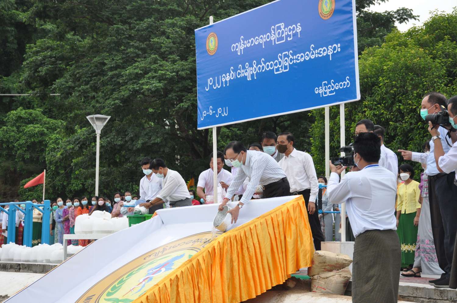 ယင်းနောက် ကျန်းမာရေးဝန်ကြီးဌာန၊ ဒုတိယဝန်ကြီး ပါမောက္ခဒေါက်တာအေးထွန်း၊ နေပြည်တော်ကောင်စီအဖွဲ့ဝင် ဗိုလ်မှူးကြီး မင်းနောင်၊ ကျန်းမာရေးဝန်ကြီးဌာန၊ ဝန်ကြီးရုံးနှင့် ဦးစီးဌာနအသီးသီးမှ ညွှန်ကြားရေးမှူးချုပ်များ၊ ဒုတိယညွှန်ကြားရေးမှူးချုပ်များနှင့် ဝန်ထမ်းများက ငါးကြင်းရွှေဝါ ငါးသားပေါက်အကောင်ရေ ၁၀၀၀၀ နှင့် ငါးမြစ်ချင်း ငါးသားပေါက်အကောင်ရေ ၁၀၀၀၀၊ စုစုပေါင်း ငါးသားပေါက်အကောင်ရေ ၂၀၀၀၀ ကို စိုက်ထည့်ပေးကြသည်။