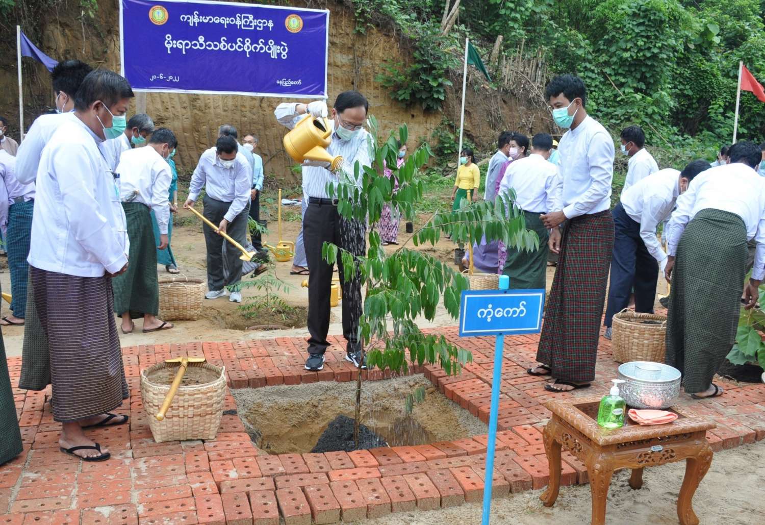 ထို့နောက် အမျိုးသားပရဆေးဥယျာဉ်တွင် ကျန်းမာရေးဝန်ကြီးဌာန၊ မိုးရာသီသစ်ပင် စိုက်ခြင်းအခမ်းအနားကို ဆက်လက်ကျင်းပရာ ပြည်ထောင်စုဝန်ကြီး ပါမောက္ခ ဒေါက်တာ သက်ခိုင်ဝင်းက ကံ့ကော်ပင်ကို လည်းကောင်း၊ နေပြည်တော်ကောင်စီဥက္ကဋ္ဌ၊ မြို့တော်ဝန် ဒေါက်တာမောင်မောင်နိုင်က ကရမက်ပင်ကို လည်းကောင်း၊ ကျန်းမာရေးဝန်ကြီးဌာန၊ ဒုတိယဝန်ကြီး ပါမောက္ခဒေါက်တာ အေးထွန်းက သရဖီပင်ကို လည်းကောင်း၊ နေပြည်တော်ကောင်စီအဖွဲ့ဝင် ဗိုလ်မှူးကြီး မင်းနောင်က စကားဝါပင်ကို လည်းကောင်း စိုက်ပျိုးပေးကြပြီး ကျန်းမာရေးဝန်ကြီးဌာန၊ ဝန်ကြီးရုံးနှင့် ဦးစီးဌာနအသီးသီးမှ ညွှန်ကြားရေးမှူးချုပ်များ၊ ဒုတိယညွှန်ကြားရေးမှူးချုပ်များနှင့် ဝန်ထမ်းများက နှစ်ရှည်တိုင်းရင်းဆေးဖက်ဝင်အပင်များ ဖြစ်ကြသည့် ကံ့ကော်၊ ကရမက်၊ သရဖီ၊ စကားဝါ၊ နံ့သာဖြူ၊ ကရဝေး၊ သစ်ကြံပိုး၊ ရှိန်းခို၊ သစ်ဆိမ့်၊ ပုတီးဖြူ၊ ရင်ခတ်၊ ပုန်းညက် စသည့် တိုင်းရင်းဆေးဖက်ဝင်အပင်များကို စိုက်ပျိုးပေးကြသည်။