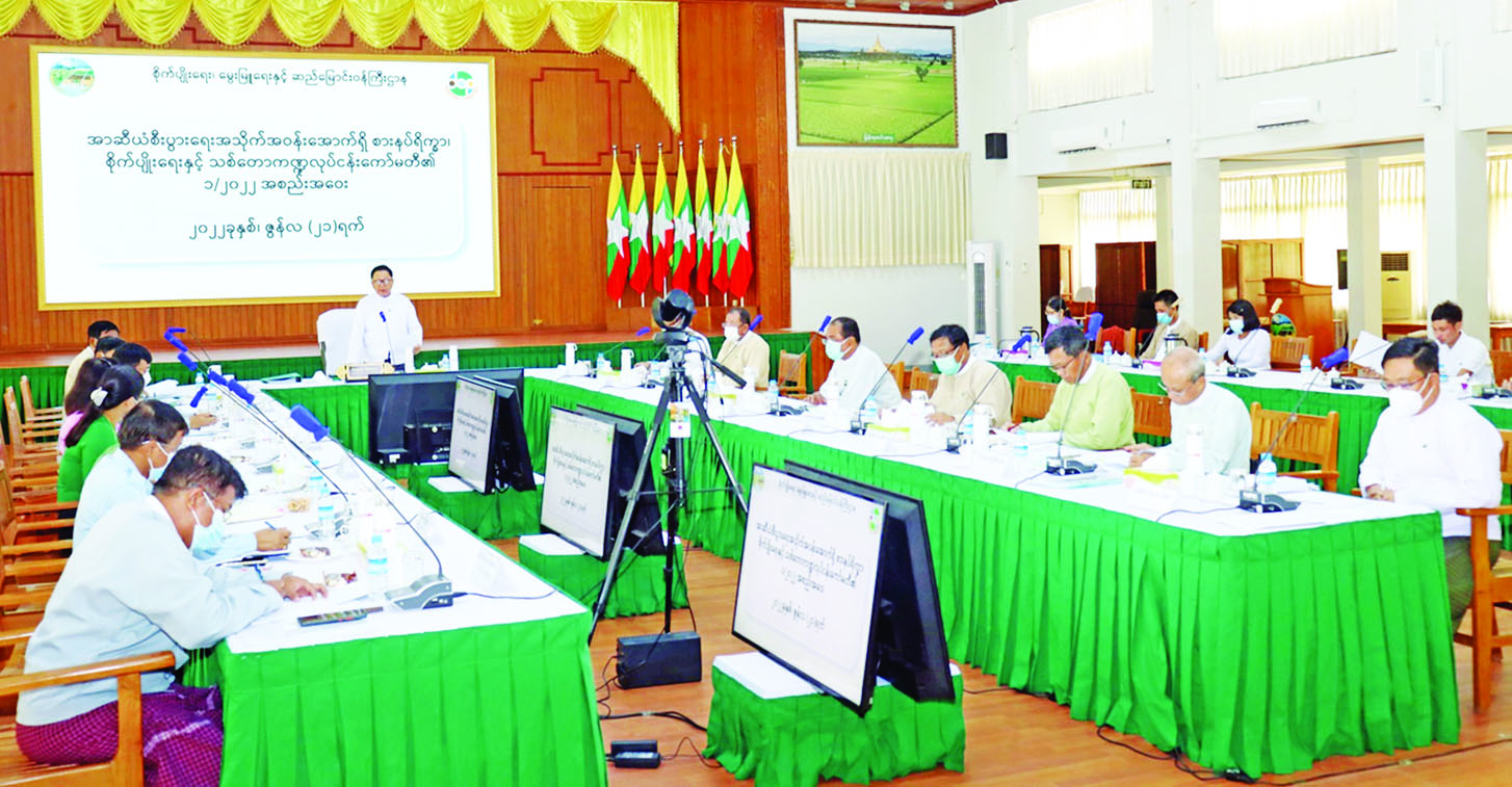 အစည်းအဝေးတွင် လုပ်ငန်းကော်မတီဥက္ကဋ္ဌ ဒုတိယဝန်ကြီးက အာဆီယံအသိုက်အဝန်း၏ မဏ္ဏိုင်ကြီး(၃)ခုအနက် အာဆီယံစီးပွားရေးအသိုက်အဝန်း လမ်းပြမြေပုံ (၂၀၂၅)တွင် ပါရှိသောလုပ်ငန်းများ ဆောင်ရွက်နိုင်ရန် လုပ်ငန်းကော်မတီ ၂၂ ခုကို သက်ဆိုင်ရာ ကဏ္ဍအလိုက် ဖွဲ့စည်းထားရှိရာ “စားနပ်ရိက္ခာ၊ စိုက်ပျိုးရေးနှင့် သစ်တောဆိုင်ရာ လုပ်ငန်းကော်မတီ”ကလည်း တစ်ခုအပါအဝင်ဖြစ်ကြောင်း၊ အဆိုပါလုပ်ငန်းကော်မတီအနေဖြင့် “အာဆီယံလူမှုအသိုက်အဝန်း အေးချမ်းသာယာဝပြောရေး၊ စားနပ်ရိက္ခာဖူလုံရေးနှင့် အာဟာရ ပြည့်ဝရေးတို့ကို အထောက်အကူဖြစ်စေမည့် တစ်ခုတည်းသော ဈေးကွက်နှင့် ထုတ်လုပ်မှုအခြေခံကာ ယှဉ်ပြိုင်နိုင်စွမ်းရှိပြီး အားလုံးပါဝင်သော တုံ့ပြန်ခံနိုင်စွမ်း ကောင်းမွန်၍ ရေရှည်တည်တံ့သော စားနပ်ရိက္ခာ၊ စိုက်ပျိုးရေးနှင့် သစ်တောကဏ္ဍတို့ကို ကမ္ဘာ့စီးပွားရေးနှင့် ချိတ်ဆက်ဆောင်ရွက်နိုင်ရေး” မျှော်မှန်းဆောင်ရွက်လျက်ရှိကြောင်း၊ အာဆီယံစားနပ်ရိက္ခာ၊ စိုက်ပျိုးရေးနှင့် သစ်တောကဏ္ဍ ပူးပေါင်းဆောင်ရွက်မှုအတွက် မျှော်မှန်းချက်ပြည့်မီစေရေး လုပ်ငန်းများကို အကောင်အထည်ဖော် ဆောင်ရွက်နိုင်ရေးအတွက် မိမိတို့ကော်မတီ၌ လုပ်ငန်းတာဝန် ၁၃ ခု ရှိပြီး ယင်းလုပ်ငန်းတာဝန်များ၏ အကောင်အထည်ဖော် ဆောင်ရွက်နိုင်မှု တိုးတက်မှုအခြေအနေများကို ပြုစုပြီး ဆက်လက်တင်ပြနိုင်ရေးအတွက် သက်ဆိုင်ရာ ကဏ္ဍအလိုက် တာဝန်ရှိသူများအနေဖြင့် ကြိုးပမ်းကြရန် တိုက်တွန်းပါကြောင်း ပြောကြားသည်။