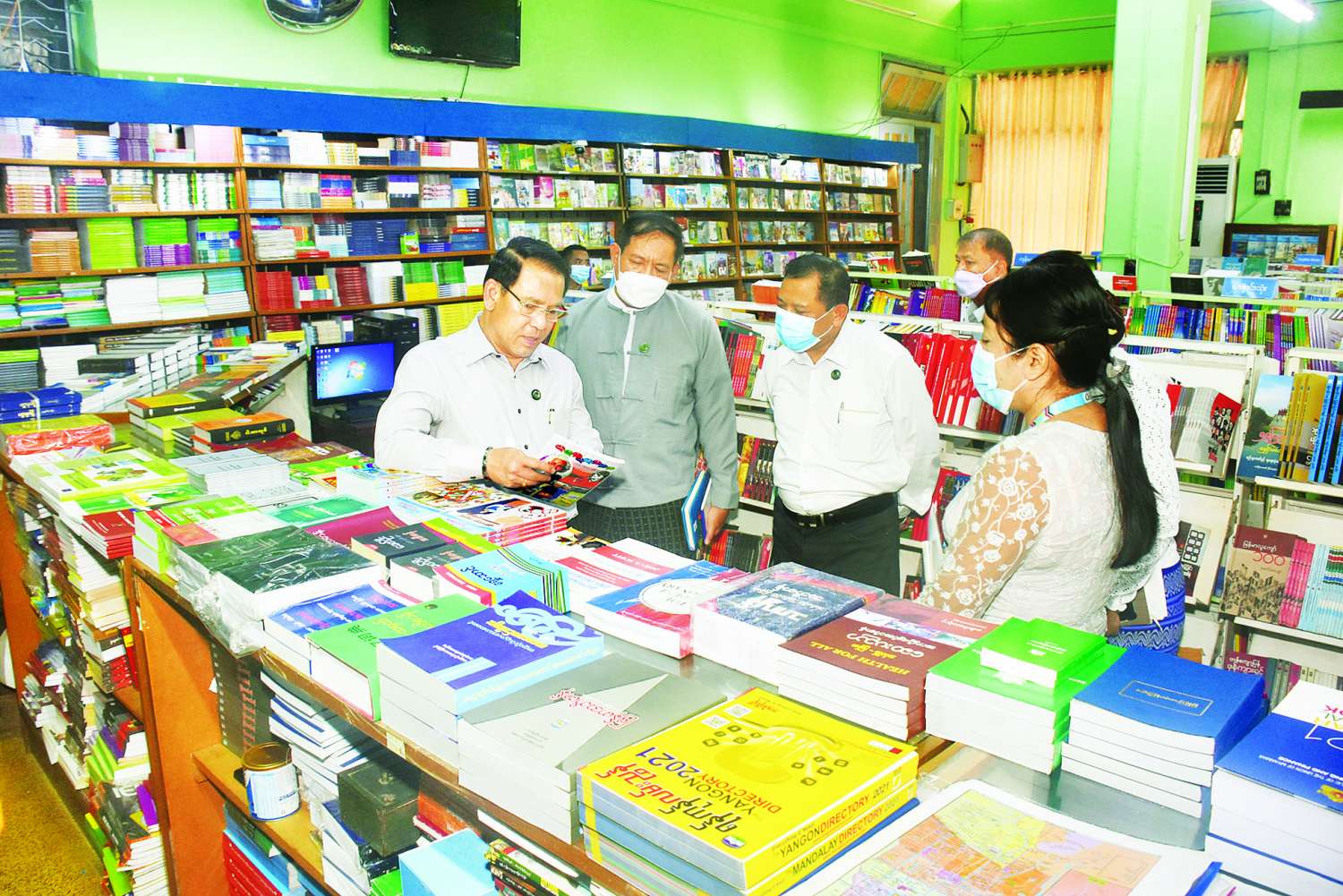 ထို့နောက် ကုန်သည်လမ်းနှင့် ၃၇ လမ်းထောင့်ရှိ စာပေဗိမာန် စာအုပ်အရောင်းဆိုင်ကို ရောက်ရှိပြီး စာအုပ်စာစောင်များ ခင်းကျင်းရောင်းချမှုကို ကြည့်ရှုစစ်ဆေးကာ ပုံမှန်ရောင်းချနေမှုများအပြင် လူငယ်များ စိတ်ဝင်စားစွာ ဝင်ထွက်ကြည့်ရှု ဝယ်ယူနိုင်စေရေး နည်းလမ်းရှာဖွေဆောင်ရွက်ရန် မှာကြားသည်။