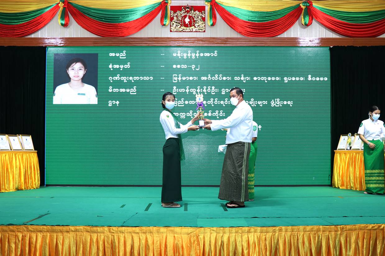 ဆက်လက်၍ ဒုတိယဝန်ကြီး၊ ဗိုလ်ချုပ်ခွန်သန့်ဇော်ထူးက ၅ ဘာသာဂုဏ်ထူးရှင် ၄ ဦးနှင့် ရာနှုန်းပြည့်အောင်မြင်သည့် အထူးဆုရ လူငယ်ဖွံ့ဖြိုးရေး သင်တန်းကျောင်း ၁ ကျောင်းတို့ကို လည်းကောင်း၊ ဒုတိယဝန်ကြီး၏ဇနီးက အောင်ချက် ၇၀ ရာခိုင်နှုန်းအထက် အောင်မြင်သော လူငယ်ဖွံ့ဖြိုးရေးသင်တန်းကျောင်း ၅ ကျောင်းတို့ကိုလည်းကောင်း ဂုဏ်ပြုဆုများ ချီးမြှင့်သည်။