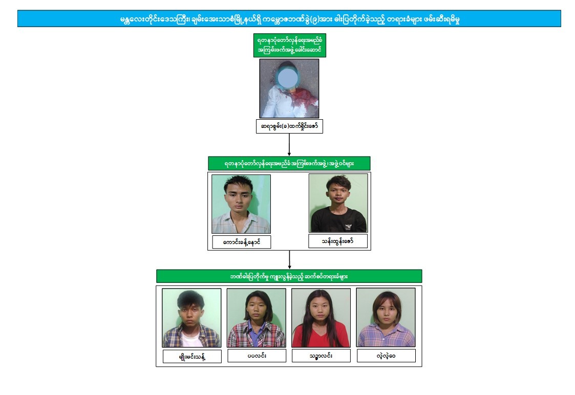 မန္တလေးတိုင်းဒေသကြီး၊ ချမ်းအေးသာစံမြို့နယ်ရှိ ကမ္ဘောဇဘဏ်ခွဲ(၉)အား ဓါးပြတိုက်ရာတွင် ပါဝင်ခဲ့သည့် တရားခံများအား ဖမ်းဆီးရမိ