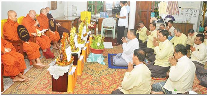 အကြမ်းဖက်အဖွဲ့အစည်းများ၏ လုပ်ကြံသတ်ဖြတ်ခြင်းများကြောင့် ပျံလွန်တော်မူသွားကြသော ရဟန်းသံဃာတော်များ၊ ရှင်သာမဏေများ၊ ကျဆုံးသွားကြသော တပ်မတော်သားများ၊ မြန်မာနိုင်ငံ ရဲတပ်ဖွဲ့ဝင်များ၊ ဌာနဆိုင်ရာဝန်ထမ်းများ၊ YMBA အသင်းအဆင့်ဆင့်မှ အမှုဆောင်များနှင့် အသင်းဝင်များ၊ စီမံအုပ်ချူပ်ရေးအဆင့်ဆင့်မှပုဂ္ဂိုလ်များ၊ စစ်မှုထမ်းဟောင်းများ၊ အငြိမ်းစားဝန်ထမ်းများနှင့် ပြည်သူများကို ရည်စူး၍ ဗုဒ္ဓဘာသာကလျာဏယုဝအသင်း(ဗဟို)က ဝါဆိုသင်္ကန်းကပ်လှူခြင်းနှင့် အမျှအတန်းပေးဝေခြင်းကို ယနေ့နံနက်ပိုင်းတွင် ရန်ကုန်မြို့ရွှေတိဂုံစေတီတော် မြောက်ဘက်မုခ်ရှိ YMBA အသင်းရုံး၌ ပြုလုပ်ရာ အဂ္ဂမဟာကမ္မဌာနာ စရိယအောင်ဆန်းတောရ တပ်ဦးကျောင်းဆရာတော် ဒေါက်တာ ဘဒ္ဒန္တသဒ္ဓမ္မကိတ္တိသာရ အမှူးပြုသော သံဃာတော်အရှင်မြတ်များ ကြွရောက်တော်မူကြပြီး YMBA အသင်းဥက္ကဋ္ဌ အဂ္ဂမဟာမင်္ဂလဓမ္မ ဇောတိကဓဇ ဦးရဲထွန်းနှင့် ဗဟိုအလုပ်အမှုဆောင်များ တက်ရောက်ကြသည်။