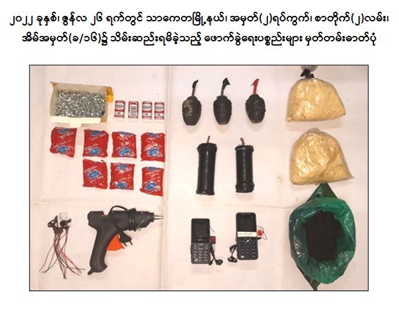 BFRAF အမည်ခံ အကြမ်းဖက်အဖွဲ့သည် နိုင်ငံတော်၏အုပ်ချုပ်မှုယန္တရား ပျက်ပြားစေရန်နှင့် အပြစ်မဲ့ပြည်သူများ ထိတ်လန့်မှုဖြစ်စေရန်ရည်ရွယ်၍ အများပြည်သူနှင့် သက်ဆိုင်သော နေရာများတွင် အကြမ်းဖက်ဖောက်ခွဲမှု ၂ ကြိမ် ကျူးလွန်ခဲ့ကြောင်း ဖော်ထုတ်သိရှိရသည်-