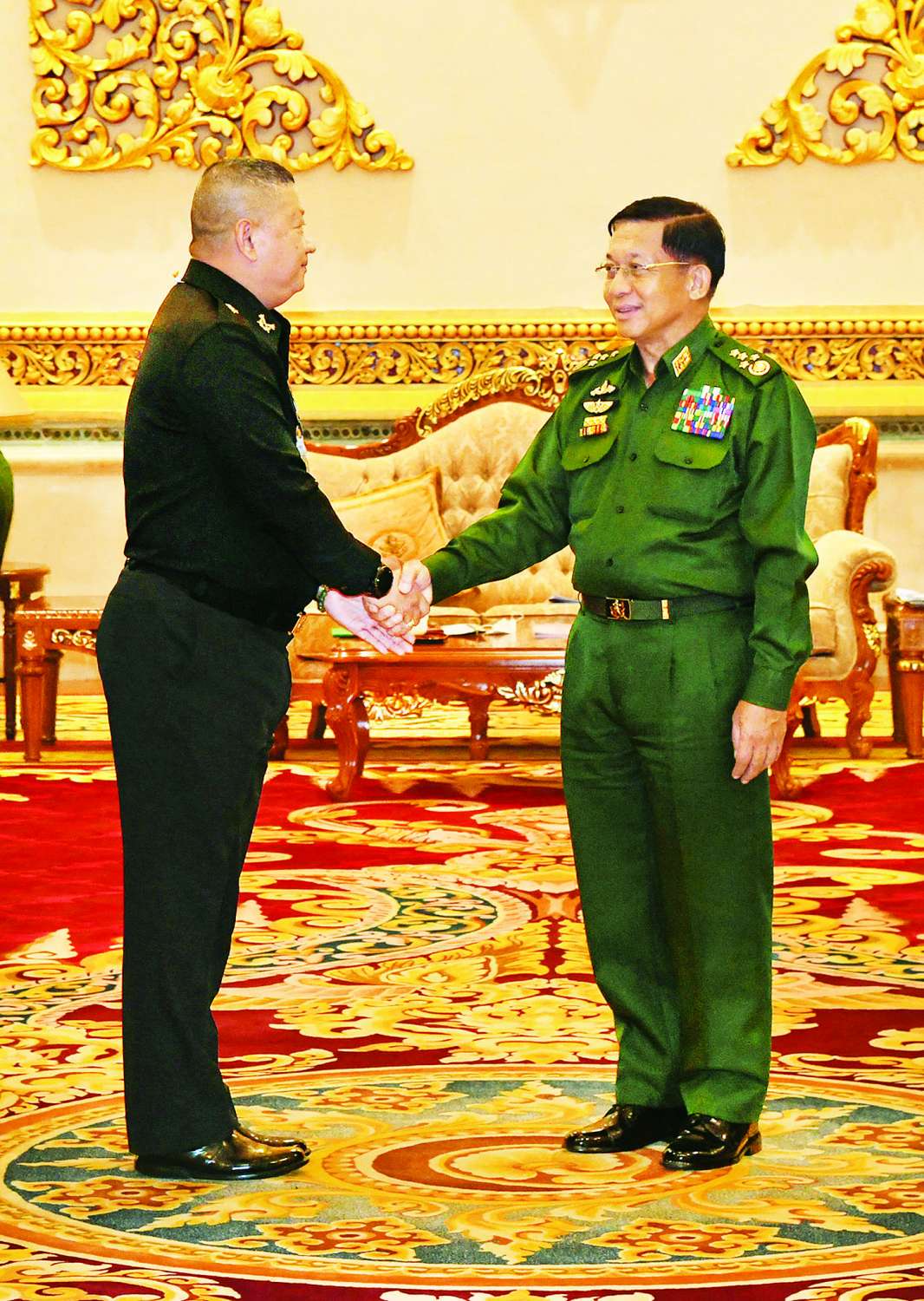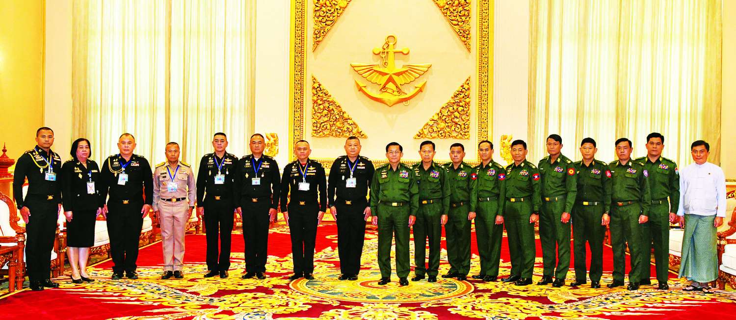 နိုင်ငံတော်စီမံအုပ်ချုပ်ရေးကောင်စီဥက္ကဋ္ဌ တပ်မတော်ကာကွယ်ရေးဦးစီးချုပ် ဗိုလ်ချုပ်မှူးကြီး မင်းအောင်လှိုင်အား ထိုင်းဘုရင့်တပ်မတော်မှ Lt.Gen. Apichet Suesat ဦးဆောင်သည့် ကိုယ်စားလှယ်အဖွဲ့ လာရောက်ဂါရဝပြုတွေ့ဆုံ