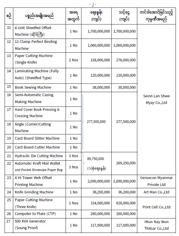ဦးစီးဌာနနှင့် လုပ်ငန်းများ၏ ကြေညာချက်များ
