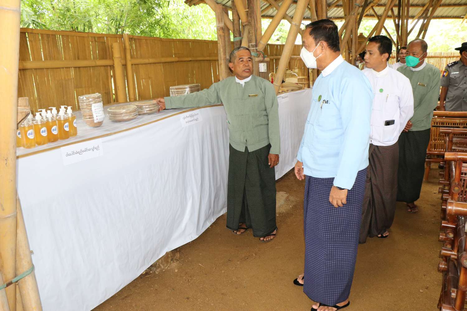 ၎င်းနောက် ပြည်ထောင်စုဝန်ကြီးနှင့်အဖွဲ့သည် ဘမ်ဘူးဝါးကုန်ထုတ်သမဝါယမအသင်း လီမိတက်မှ ဝါးဖြင့်ပြုလုပ်ထားသော ထုတ်ကုန်ပစ္စည်းများကို လှည့်လည်ကြည့်ရှုခဲ့ကြပြီး သင်တန်းသား/ သင်တန်းသူများနှင့် တွေ့ဆုံကာ လိုအပ်သည်များ ဖြည့်ဆည်းဆောင်ရွက်ပေးခဲ့ကြောင်း သိရသည်။