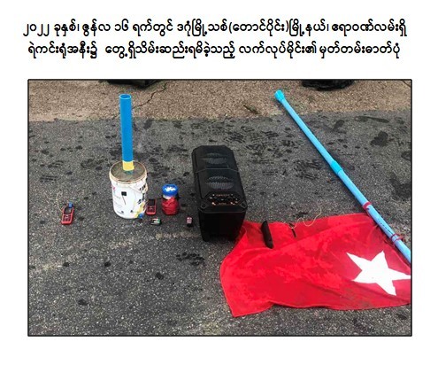 -ဇွန်လ ၁၆ ရက်တွင် သန့်ဇင်အောင်(ခ)TK Boss သည် ဒဂုံမြို့သစ်(တောင်ပိုင်း) မြို့နယ်၊ ဧရာဝတီလမ်းရှိ ရဲကင်းရုံအား လက်လုပ်မိုင်း ၁ လုံး ပစ်ခတ်ဖောက်ခွဲခဲ့ကြောင်း။