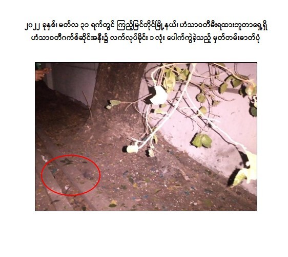 ထို့ပြင် ဇွန်လ ၁၆ ရက်တွင် သန့်ဇင်အောင်(ခ)TK Boss နှင့် အီးဝမ်းတို့သည် ဒဂုံမြို့သစ်(တောင်ပိုင်း)မြို့နယ်၊ ဧရာဝတီလမ်းပေါ်ရှိ ပွိုင့်ထိပ်မှတ်တိုင်အနီးတွင် မိုင်းထောင်ဖောက်ခွဲရန် လုပ်ဆောင်နေစဉ် လုံခြုံရေးတပ်ဖွဲ့ဝင်များက တွေ့ရှိသဖြင့် ဖမ်းဆီးရမိရေး ဆောင်ရွက်ခဲ့ရာ တရားခံ ၂ ဦးသည် အနီးတွင် အသင့်ရပ်ထားသည့် ယာဉ်ပေါ်သို့တက်ကာ လုံခြုံရေးတပ်ဖွဲ့ဝင်များအား ယာဉ်ဖြင့်တိုက်၍ မောင်းနှင်ထွက်ပြေးခဲ့သဖြင့် ခုခံပစ်ခတ်ဖမ်းဆီးခဲ့ရာ သန့်ဇင်အောင် (ခ)TK Boss အား လက်လုပ်မိုင်း ၁ လုံးနှင့် အတူ ဖမ်းဆီးရမိခဲ့ပြီး အီးဝမ်းအား အသေဖမ်းဆီးရမိခဲ့ကြောင်း သိရှိရသည်။