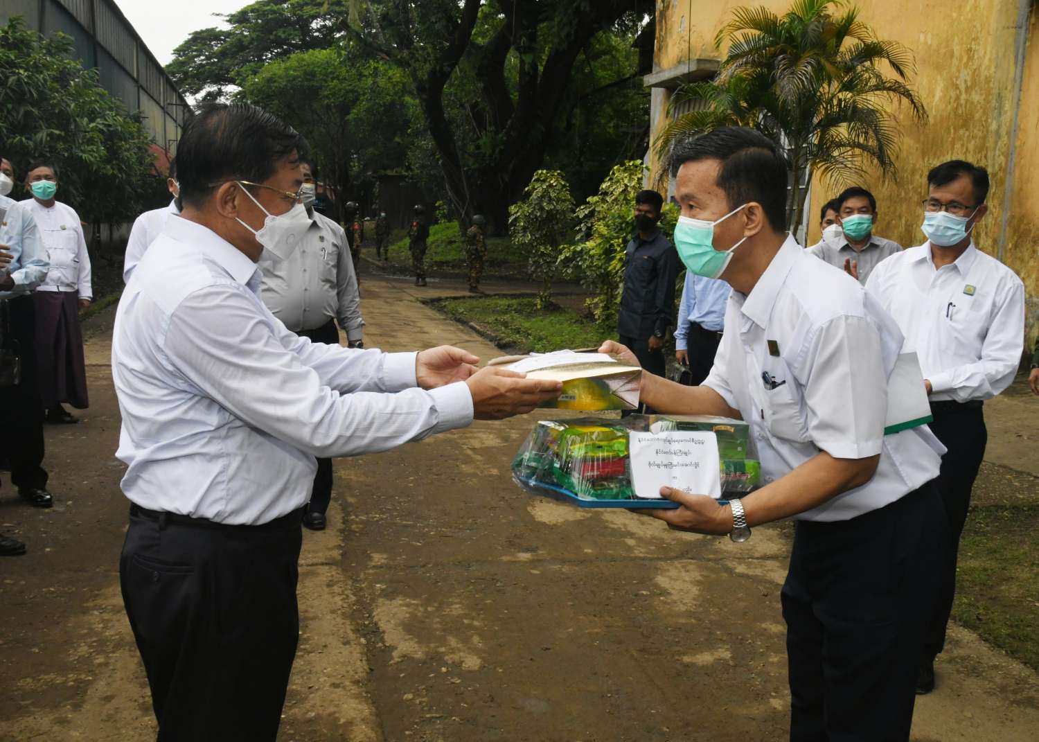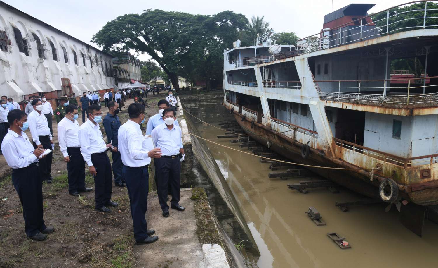 ထို့နောက် နိုင်ငံတော်စီမံအုပ်ချုပ်ရေးကောင်စီဥက္ကဋ္ဌ နိုင်ငံတော်ဝန်ကြီးချုပ်နှင့် အဖွဲ့ဝင်များသည် ဒလသင်္ဘောကျင်းအတွင်း လှည့်လည်ကြည့်ရှုစစ်ဆေးခဲ့ပြီး တာဝန်ရှိသူများ၏ တင်ပြချက်များအပေါ် အဆောက်အဦများ ပြန်လည်ပြုပြင်ထိန်းသိမ်းရန်၊ သင်္ဘောတည်ဆောက်ရေးအတွက် လိုအပ်သည့် စက်ပစ္စည်းများ ပြန်လည်ဖြည့်တင်းဆောင်ရွက်ရန်၊ စက်ယန္တရားများ အပြည့်အဝ ပြန်လည်လည်ပတ်နိုင်ရေး ဆောင်ရွက်ရန်တို့အား မှာကြားပြီး လက်ဆောင်ပစ္စည်းများနှင့် ဂုဏ်ပြုချီးမြှင့်ငွေများ ပေးအပ်ခဲ့ကြောင်း သတင်းရရှိသည်။