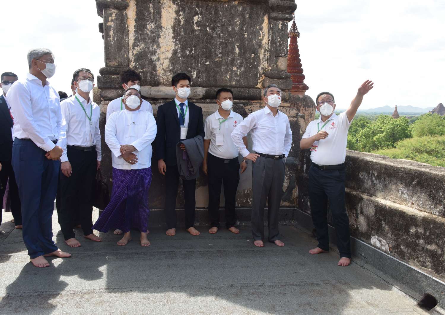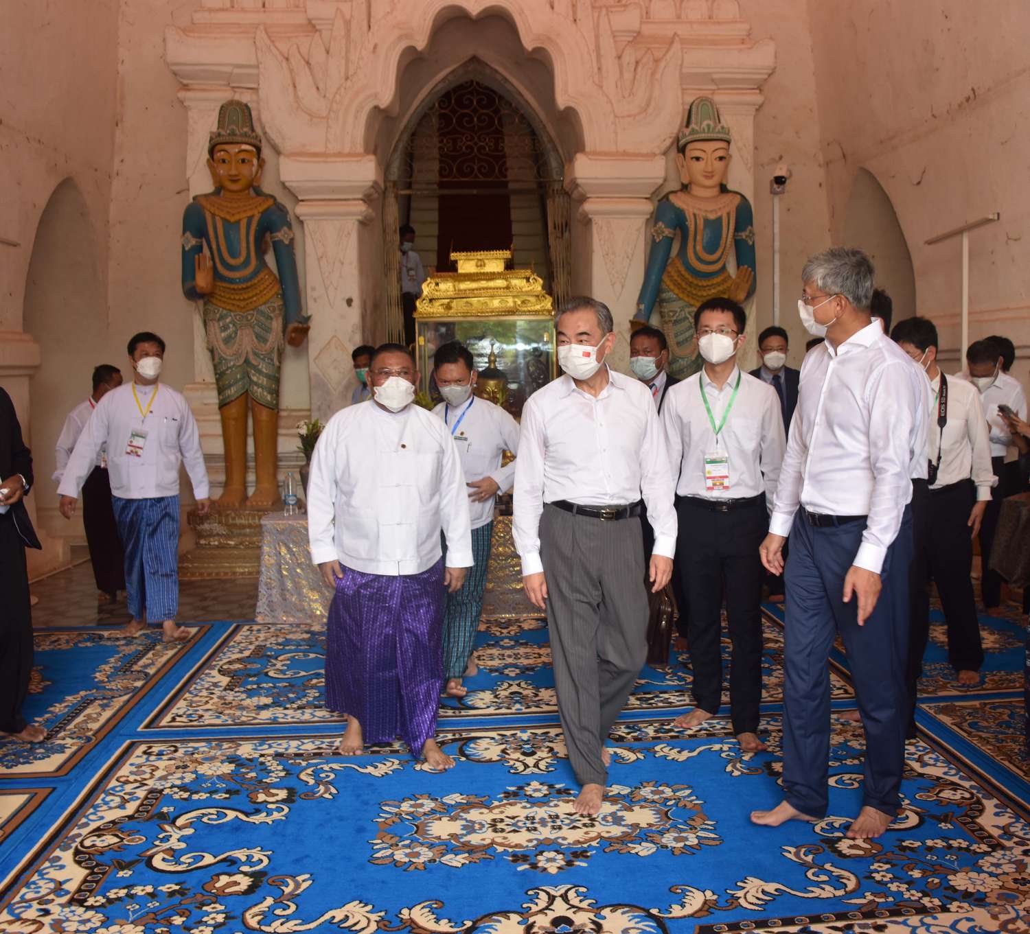 ထိုမှတဆင့် နိုင်ငံခြားရေးဝန်ကြီးဌာန ပြည်ထောင်စုဝန်ကြီး ဦးဝဏ္ဏမောင်လွင်နှင့် နိုင်ငံခြားရေးဝန်ကြီး မစ္စတာ ဝမ်ယိတို့သည် ပုဂံရှေးဟောင်းယဉ်ကျေးမှု နယ်မြေအတွင်းရှိ သဗ္ဗညုဂူဘုရားသို့ သွားရောက်ဖူးမြော်ကြပြီး တရုတ်ပြည်သူ့သမ္မတနိုင်ငံ အထောက်အပံ့ဖြင့် ဆောင်ရွက်လျက်ရှိသည့် သဗ္ဗညုတဘုရား ပြုပြင်ရေးစီမံကိန်းကို လှည့်လည်ကြည့်ရှုစစ်ဆေးရာ စီမံကိန်း နည်းပညာပိုင်းဆိုင်ရာ ခေါင်းဆောင် မစ္စတာ လွီယွမ်ပင်းက သဗ္ဗညုတဘုရား ပြုပြင်ရေးဆောင်ရွက်နေမှု အခြေအနေများကို ရှင်းလင်းတင်ပြသည်။