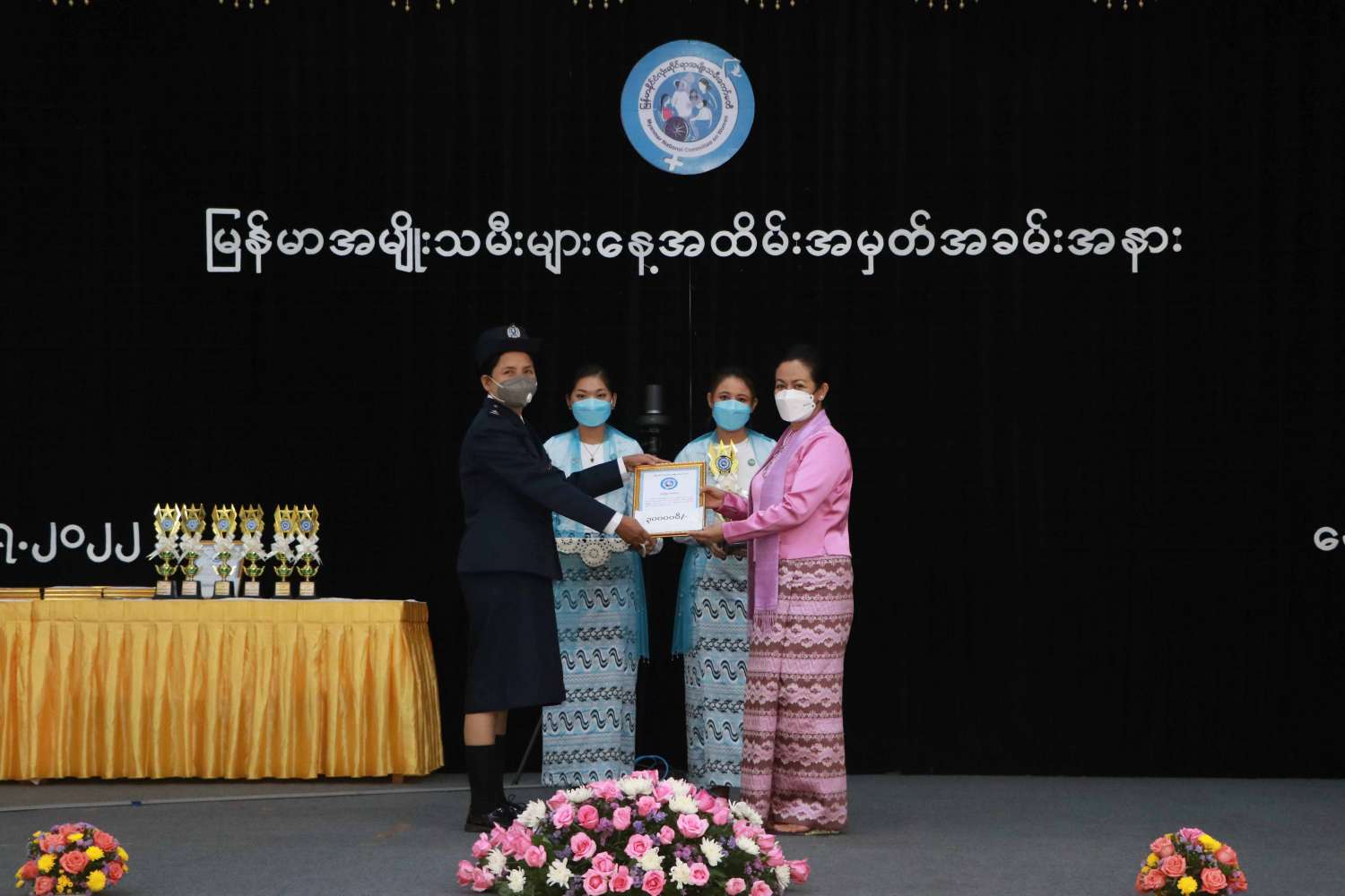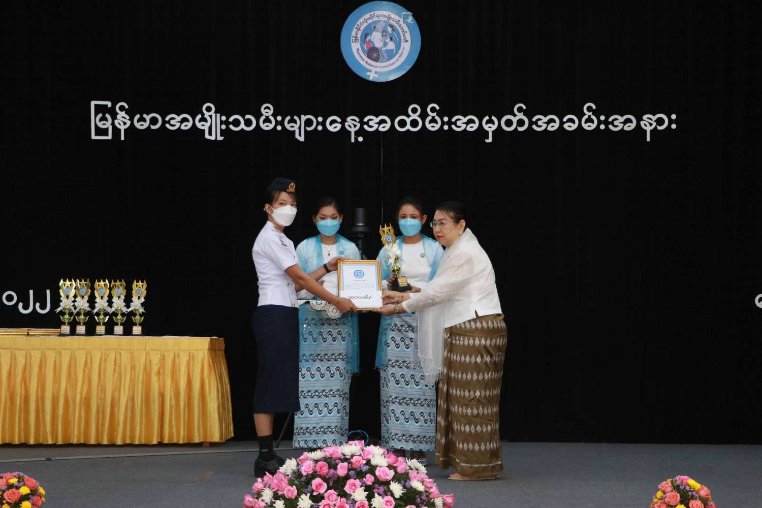 အခမ်းအနားသို့ နိုင်ငံတော်စီမံအုပ်ချုပ်ရေးကောင်စီအဖွဲ့ဝင် ဒေါ်အေးနုစိန်၊ မြန်မာနိုင်ငံလုံးဆိုင်ရာ အမျိုးသမီးကော်မတီဥက္ကဋ္ဌ၊ လူမှုဝန်ထမ်း၊ ကယ်ဆယ်ရေးနှင့် ပြန်လည်နေရာချထားရေးဝန်ကြီးဌာန ပြည်ထောင်စုဝန်ကြီး ဒေါက်တာသက်သက်ခိုင်၊ ပြည်ထောင်စုအဆင့်ပုဂ္ဂိုလ်များနှင့် ၎င်းတို့၏ ဇနီးများ၊ အမျိုးသမီးအဖွဲ့အစည်းများမှ ကိုယ်စားလှယ်များ မြန်မာနိုင်ငံလုံးဆိုင်ရာ အမျိုးသမီးကော်မတီအဖွဲ့ဝင်များ၊ ဌာနဆိုင်ရာ အကြီးအကဲများ၊ ထူးချွန်ဆုရရှိသူ အမျိုးသမီးများ၊ ဖိတ်ကြားထားသည့် ပုဂ္ဂိုလ်များ တက်ရောက်ကြပြီး တိုင်းဒေသကြီးနှင့် ပြည်နယ်များမှ အမျိုးသမီးကော်မတီ ဥက္ကဋ္ဌများနှင့် အတွင်းရေးမှူးများက Virtual စနစ်ဖြင့် တက်ရောက်ကြသည်။