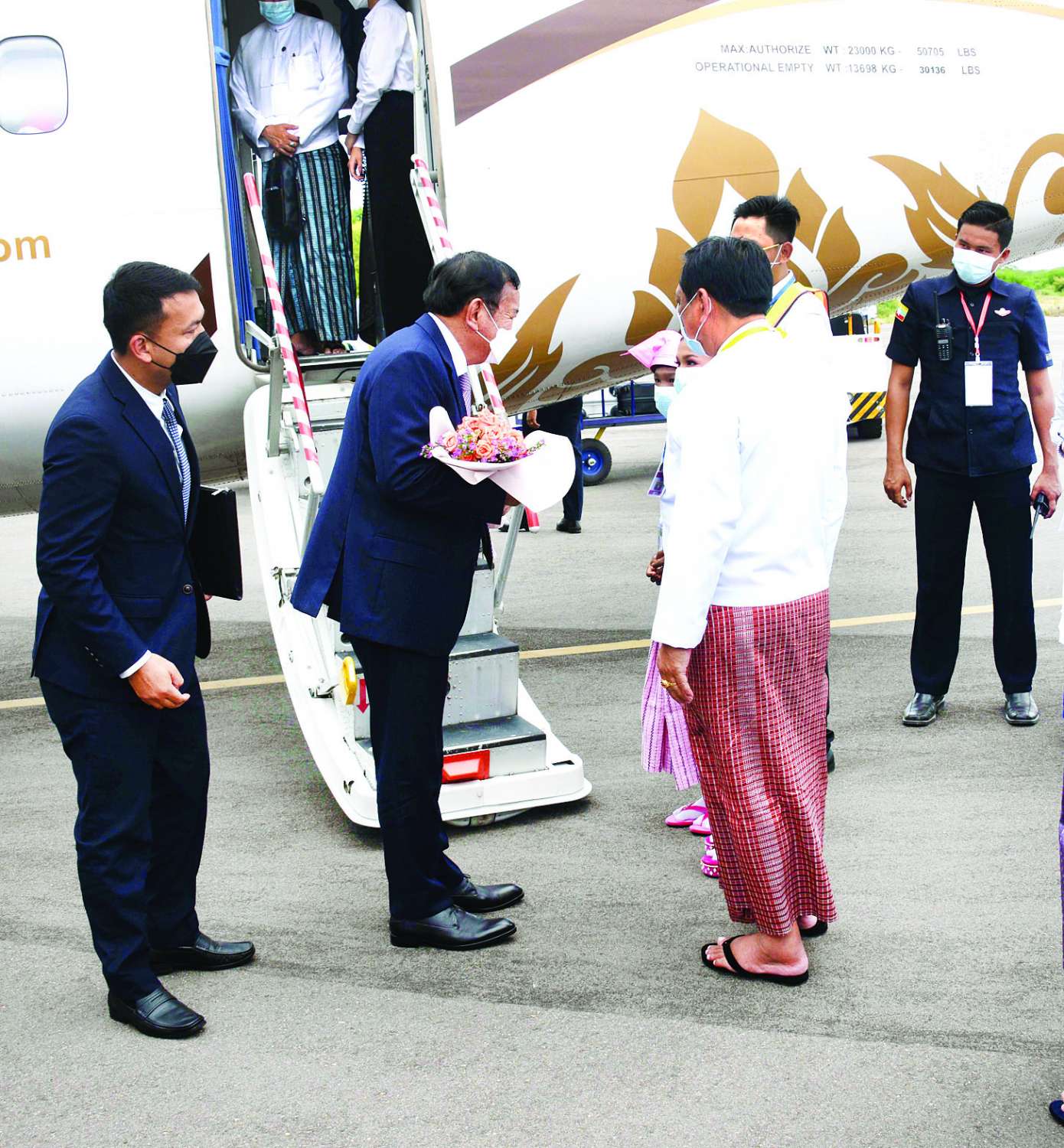 မဲခေါင်-လန်ချန်းအဖွဲ့ဝင်နိုင်ငံများမှ နိုင်ငံခြားရေးဝန်ကြီးများဖြစ်ကြသည့် ကမ္ဘောဒီးယား ဒုတိယဝန်ကြီးချုပ်၊ နိုင်ငံခြားရေးနှင့်အပြည်ပြည်ဆိုင်ရာ ပူးပေါင်းဆောင်ရွက်ရေးဝန်ကြီး H.E. Mr. Prak Sokhonn ၊ လာအိုဒုတိယဝန်ကြီးချုပ်နှင့် နိုင်ငံခြားရေးဝန်ကြီး H.E. Mr. Saleumxay Kommasith၊ ထိုင်း ဒုတိယဝန်ကြီးချုပ်နှင့် နိုင်ငံခြားရေးဝန်ကြီး H.E. Mr. Don Pramudwinai နှင့် ဗီယက်နမ် နိုင်ငံခြားရေးဝန်ကြီး H.E. Mr. Bui Thanh Son တို့သည် (၇)ကြိမ်မြောက် မဲခေါင်-လန်ချန်း ပူးပေါင်းဆောင်ရွက်မှု နိုင်ငံခြားရေးဝန်ကြီးများ အစည်းအဝေးသို့ တက်ရောက်ရန် ၎င်းတို့၏ ကိုယ်စားလှယ်အဖွဲ့ဝင်များနှင့်အတူ ယနေ့ မွန်းလွဲပိုင်းတွင် ပုဂံမြို့ရှိ ညောင်ဦးလေဆိပ်သို့ ရောက်ရှိကြရာ နိုင်ငံခြားရေးဝန်ကြီးဌာနမှ ဒုတိယဝန်ကြီး ဦးကျော်မျိုးထွဋ်၊ မန္တလေးတိုင်းဒေသကြီးအစိုးရအဖွဲ့မှ သယံဇာတနှင့် သဘာဝပတ်ဝန်းကျင် ထိန်းသိမ်းရေးဝန်ကြီး ဦးမျိုးအောင်၊ နိုင်ငံခြားရေးဝန်ကြီးဌာန၊ သံတမန်ရေးရာဦးစီးဌာန ညွှန်ကြားရေးမှူးချုပ် ဦးဝဏ္ဏဟန်နှင့် သက်ဆိုင်ရာ တာဝန်ရှိသူတို့က လေဆိပ်၌ ကြိုဆိုကြသည်။