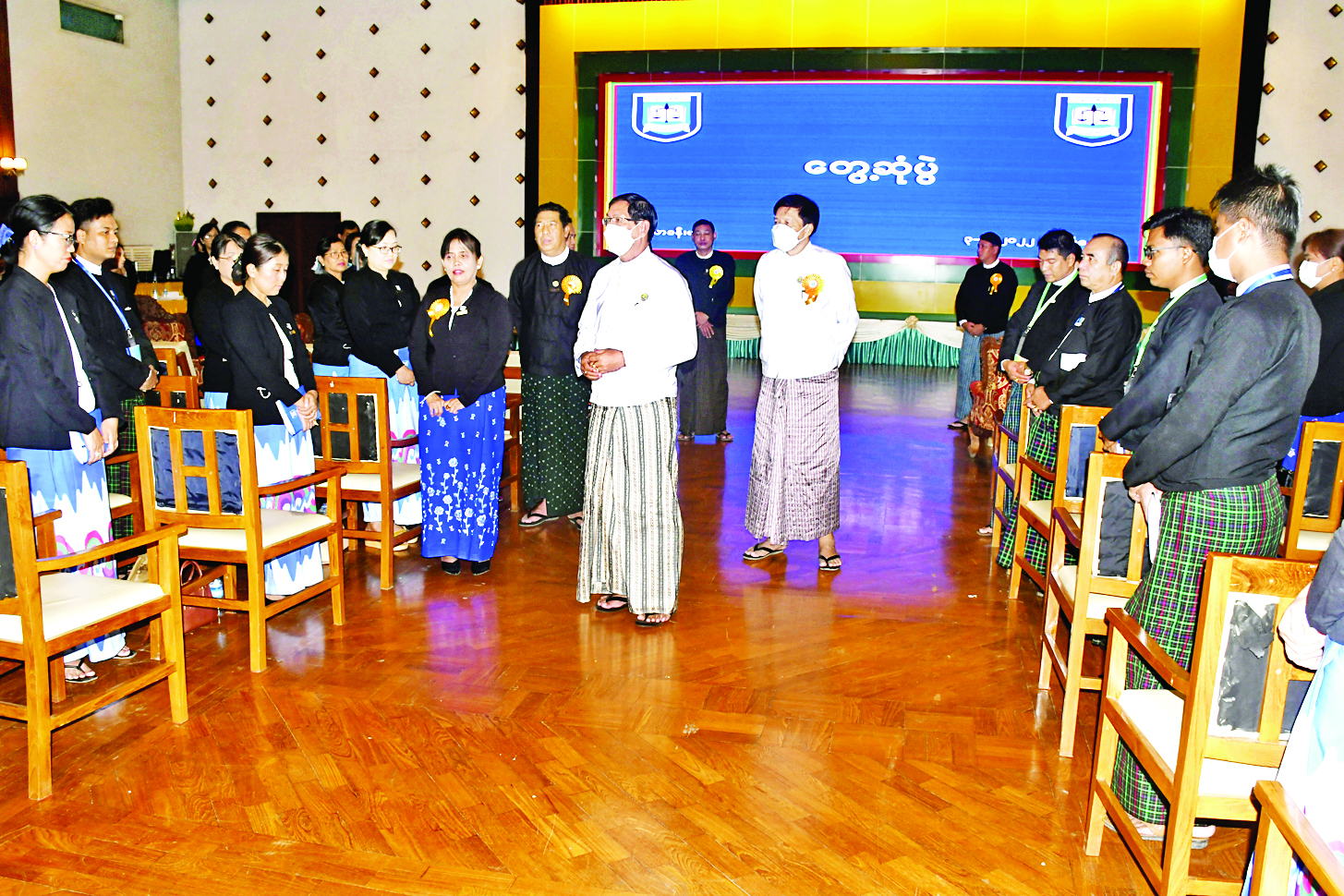 ဆက်လက်၍ ပြည်ထောင်စုဝန်ကြီး၊ ရန်ကုန်တိုင်းဒေသကြီးဝန်ကြီးချုပ်နှင့် တိုင်းဒေသကြီးအတွင်း တာဝန်ထမ်းဆောင်လျက်ရှိကြသော တိုင်းဒေသကြီး၊ ခရိုင်၊ မြို့နယ်ဥပဒေရုံးများမှ ဝန်ထမ်းများနှင့်တွေ့ဆုံပွဲကို မင်္ဂလာခန်းမကြီး၌ ကျင်းပသည်။