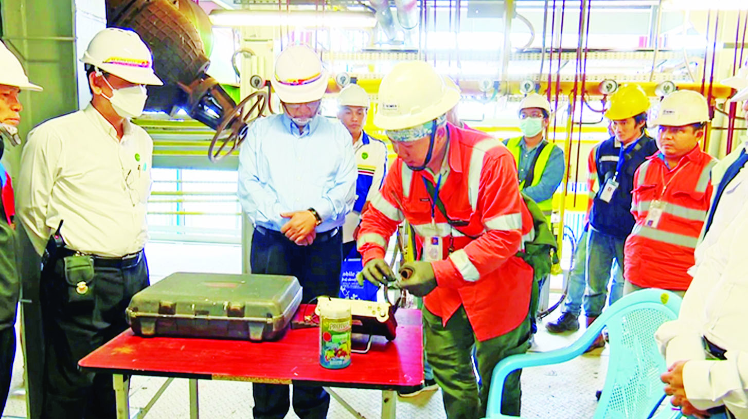 ထို့နောက် ပြည်ထောင်စု ဝန်ကြီးသည် Romelt Shop, Waste Heat Boiler, 2 Lift Pump House, Ore Preparation Unit, Air Separation Unit အတွင်းရှိ စက်ပစ္စည်းများနှင့် လျှပ်စစ်ပစ္စည်း များ စစ်ဆေးပြုပြင်နေမှုများကို ကြည့်ရှုစစ်ဆေးခဲ့ကြောင်း သိရသည်။