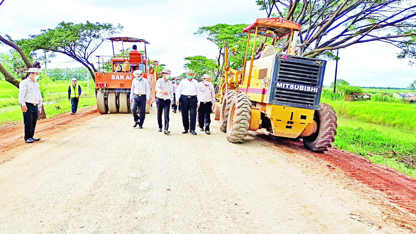 ပြည်ထောင်စုဝန်ကြီးနှင့်အဖွဲ့သည် မွန်းလွဲပိုင်းတွင် ရန်ကုန်တိုင်း လမ်းဦးစီးဌာနက ဆောင်ရွက်သည့် မှော်ဘီမြို့နယ်နှင့် လှည်းကူးမြို့နယ်တို့ကို ဆက်သွယ်သည့် အရှည် ၄ မိုင် ၁ ဖာလုံရှိသော ဆပ်သွားတော - ညောင်နှစ်ပင်လမ်းကို အမာခံ ကျောက်လမ်းပခုံး ဆောင်ရွက်နေသည့် လုပ်ငန်းများ ကို ကြည့်ရှုစစ်ဆေးသည်။ ဆက်လက်၍ ခရိုင်ချင်း ဆက်လမ်းပေါ်ရှိ ညောင်နှစ်ပင် အဝင်လမ်းပိုင်း အဆင့်မြှင့်တင်ဆောင်ရွက်နေမှုတို့ကို ကြည့်ရှုစစ်ဆေးရာ ပြည်ထောင်စုဝန်ကြီးက လမ်းပခုံးများပါ အမာခံလမ်းအဆင့်ရရှိအောင် အထပ်ထပ် ဆောင်ရွက်ရန်၊ လမ်းပေါ် ရေမဝပ်စေရန် ၊ သစ်ပင် များကို လိုအပ်ချက်မျှသာ စနစ်တကျအလင်းဖွင့်ပေးရန်နှင့် လမ်းဘေး ဝဲ/ယာ အပင်မရှိသည့် နေရာများတွင် သစ်ပင်များ စိုက်ပျိုးပေးရန်တို့ကို တာဝန်ရှိသူများအား မှာကြားသည်။