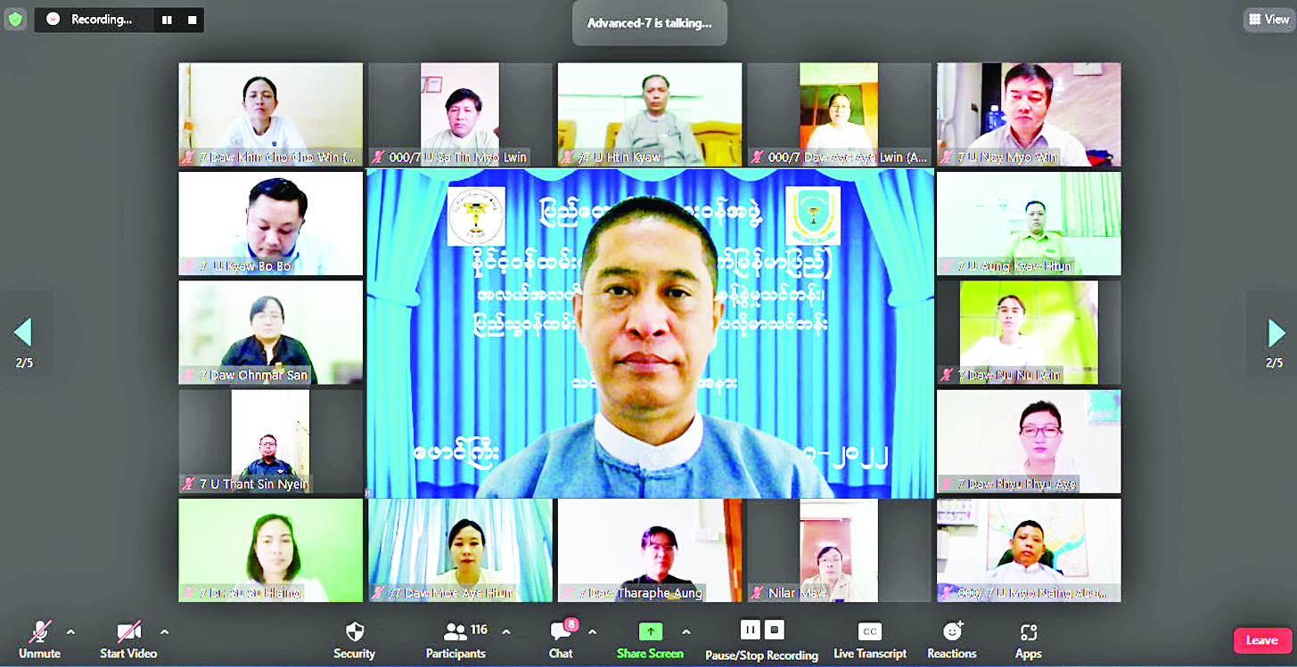 နိုင်ငံ့ဝန်ထမ်းတက္ကသိုလ်(အောက်မြန်မာပြည်) ၌ အလယ်အလတ်အဆင့် အရာထမ်းစီမံခန့်ခွဲမှု သင်တန်း၊ ပြည်သူ့ဝန်ထမ်းစီမံခန့်ခွဲမှု အဆင့်မြင့် ဒီပလိုမာသင်တန်း အမှတ်စဉ်(၇) ကိုလည်းကောင်း၊ အရာထမ်းငယ် အခြေခံသင်တန်း အမှတ်စဉ်(၁၂၁)ကို လည်းကောင်း သင်တန်းဖွင့်ပွဲ အခမ်းအနားများကို ယနေ့နံနက် ၈ နာရီတွင် Online Learning System ဖြင့် ကျင်းပသည်။