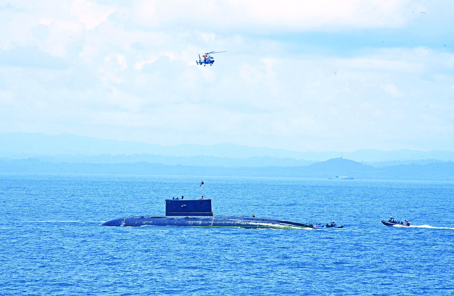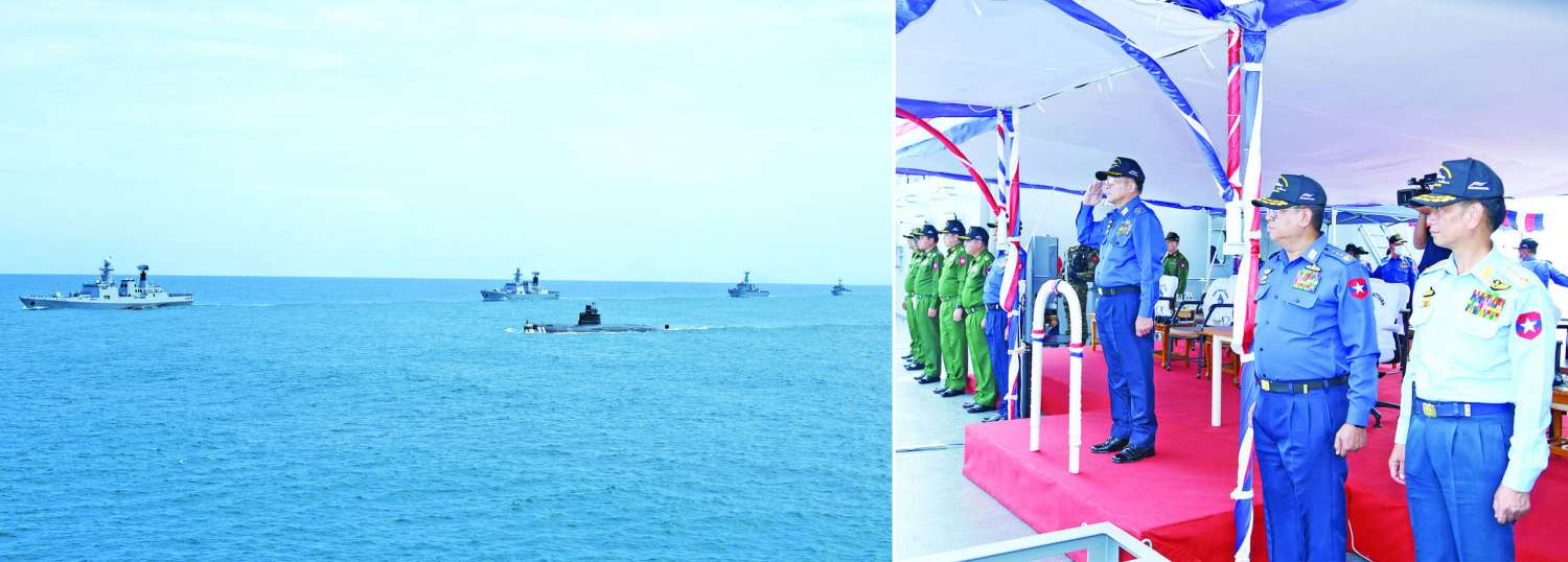 ထိုသို့ ရေငုပ်သင်္ဘောရန် ကာကွယ်မှုစစ်ဆင်ရေးနှင့် ရေငုပ်သင်္ဘောစစ်ဆင်ရေးများ လေ့ကျင့်ဆောင်ရွက်ပြီး ရေပေါ်ရေအောက် ရန်သူ့ပစ်မှတ်များအား Torpedo များဖြင့်လည်းကောင်း၊ ရေတပ်အမြောက်ကြီးများဖြင့်လည်းကောင်း၊ စက်သေနတ်ကြီးများဖြင့်လည်းကောင်း လက်တွေ့ လေ့ကျင့်ပစ်ခတ်မှုများအား နိုင်ငံတော်စီမံအုပ်ချုပ်ရေးကောင်စီဥက္ကဋ္ဌ တပ်မတော်ကာကွယ်ရေးဦးစီးချုပ်က စစ်ရေယာဉ် (မုတ္တမ)ပေါ်မှ ကြည့်ရှုစစ်ဆေးသည်။